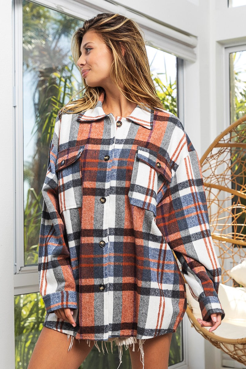 Feel the warmth of this season in our Mustard Plaid Shacket. Boasting a large plaid print and two large chest pockets, this shacket is guaranteed to make a statement. With its oversized look and fit, you'll be comfortable and stylish all day long. So, what are you waiting for? Get yours now!