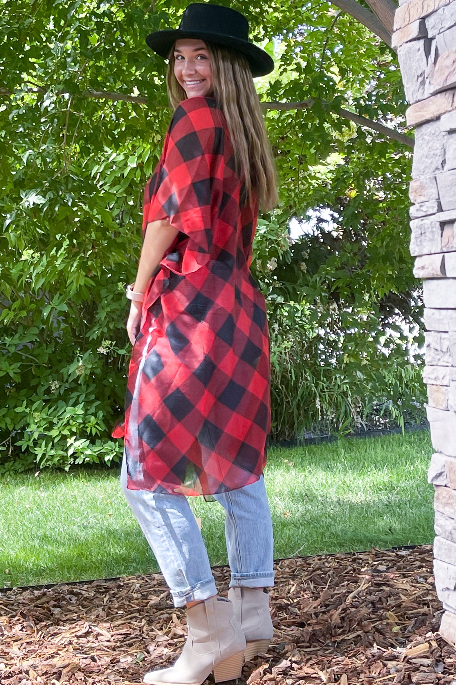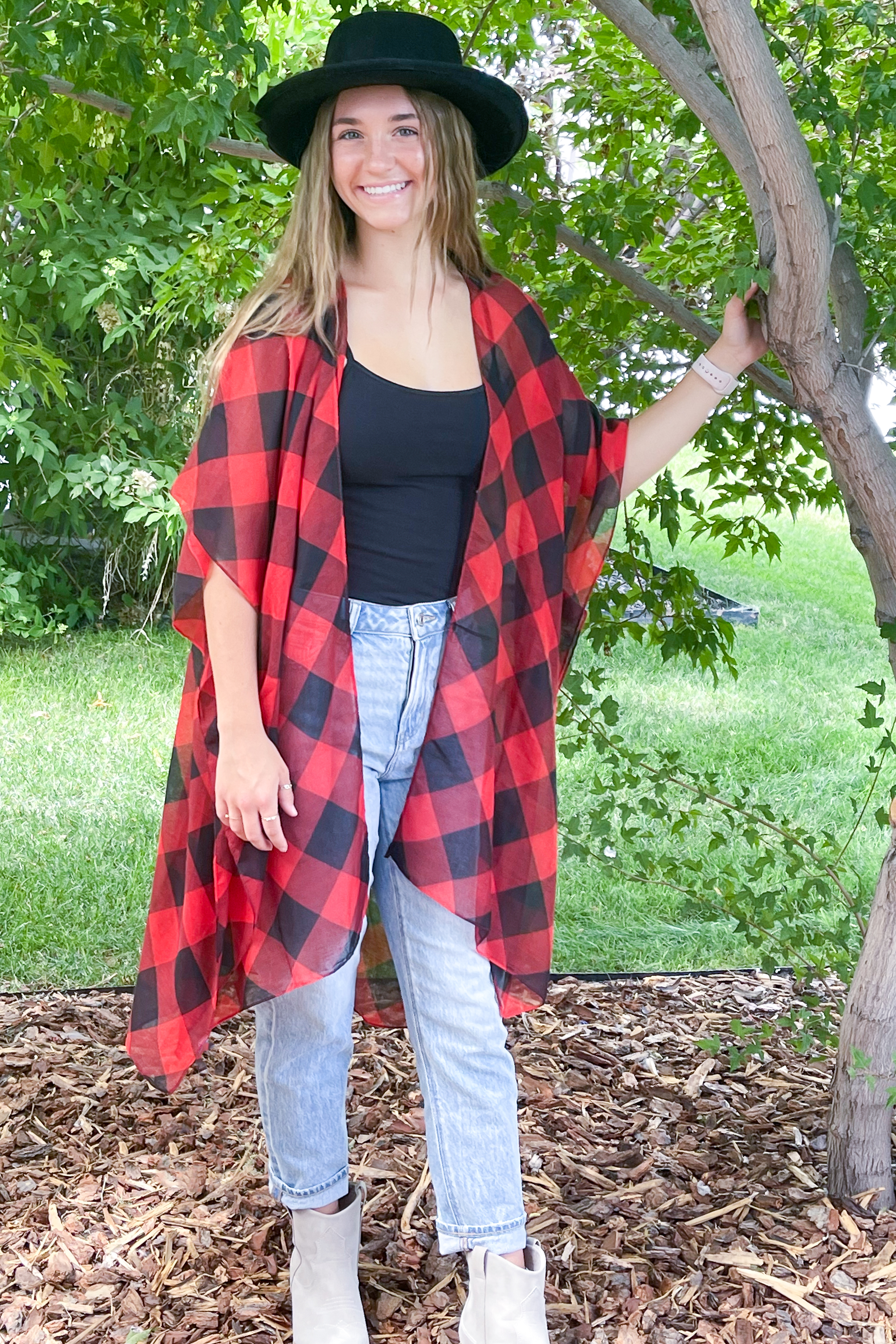 Buffalo Plaid Kimono - Red - All Sales Final