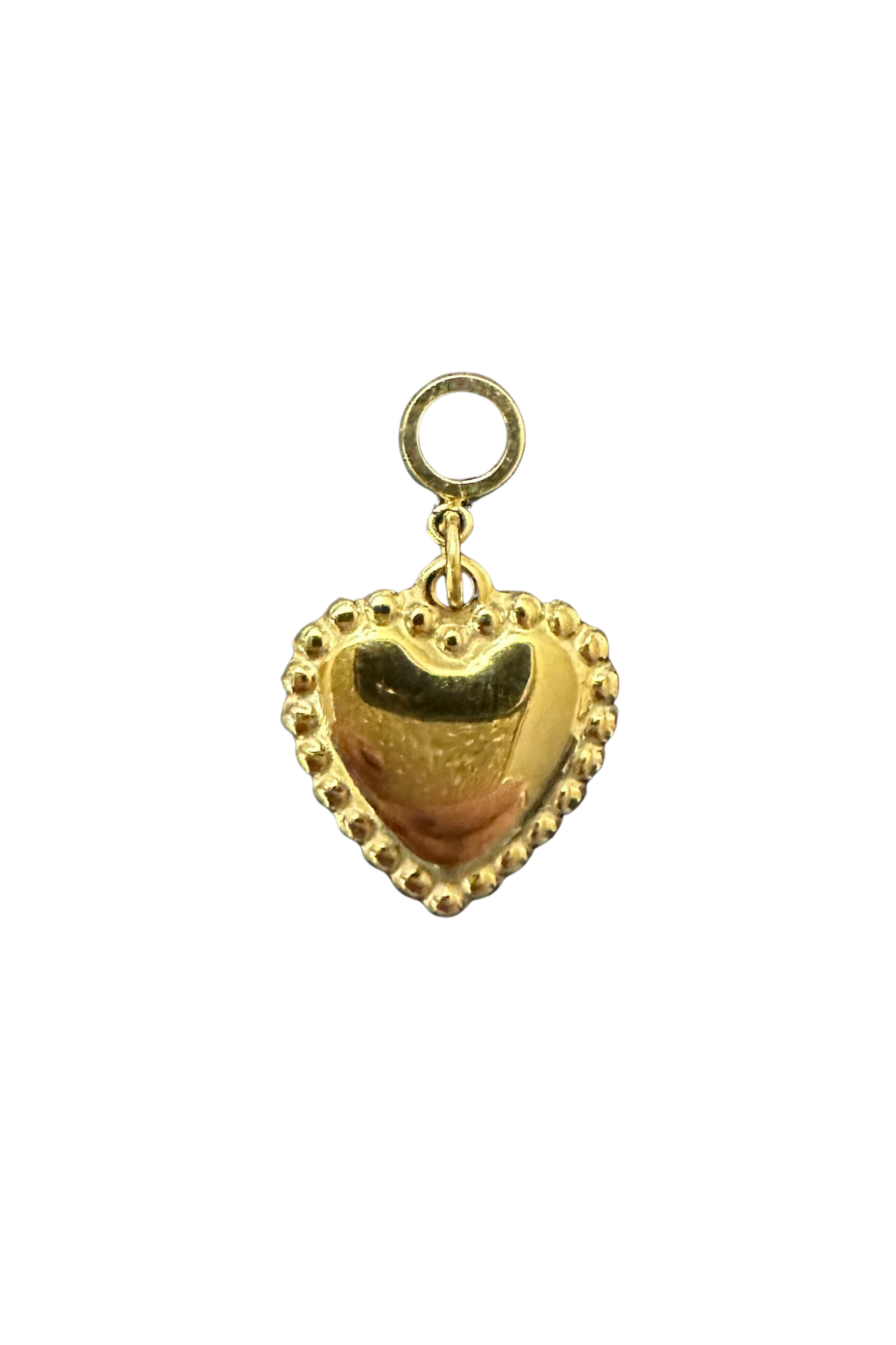 Delicate yet full of charm—the Dotted Heart Charm is a golden heart pendant outlined with a dotted edge for just the right touch of texture and detail. Its sweet, timeless design makes it a beautiful symbol of love, friendship, and connection.