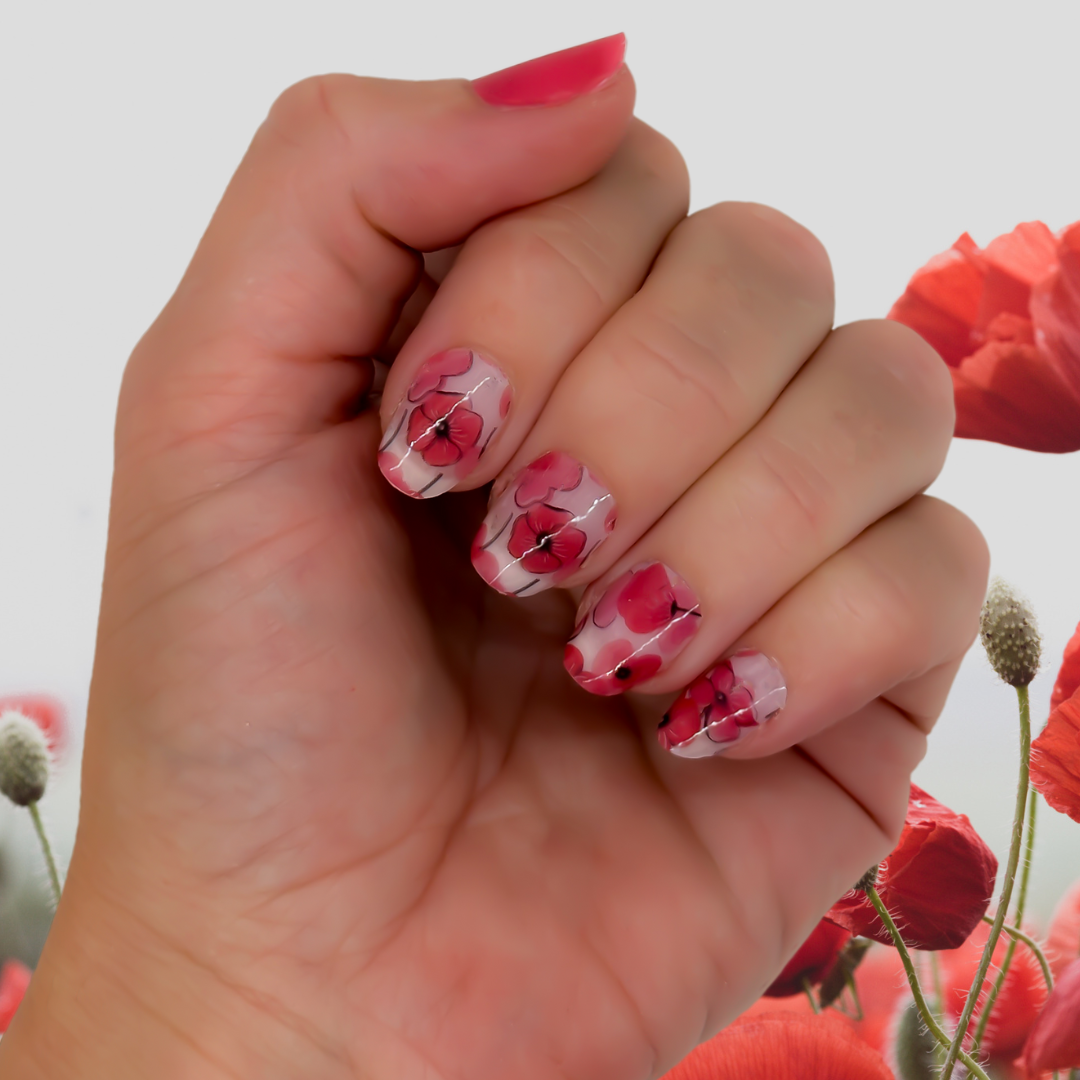 Nail Wrap - Pink Poppies