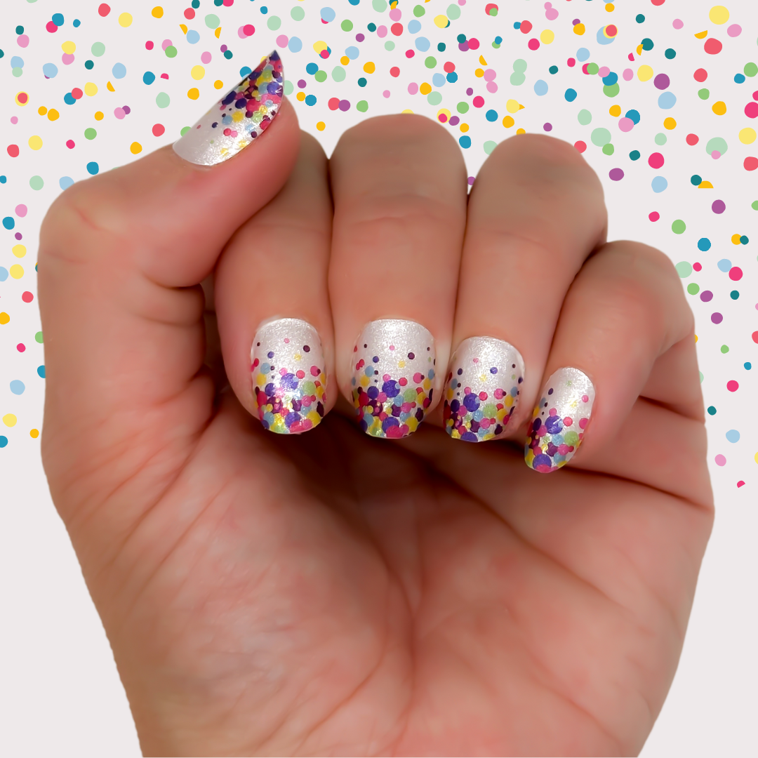 Get the party started with our Funfetti style! Add a playful touch to your nails with this colorful design and let the fun cascade down your fingertips.