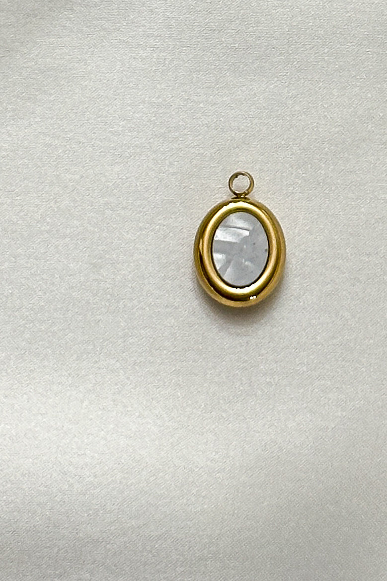 Timeless, chic, and effortlessly elegant—the Oval Pearl Charm is serving all the vintage glam vibes! Featuring a lustrous mother-of-pearl center, framed in a delicate gold border, this charm is the perfect mix of graceful and statement-making. Think old Hollywood elegance meets modern-day sophistication! 💫