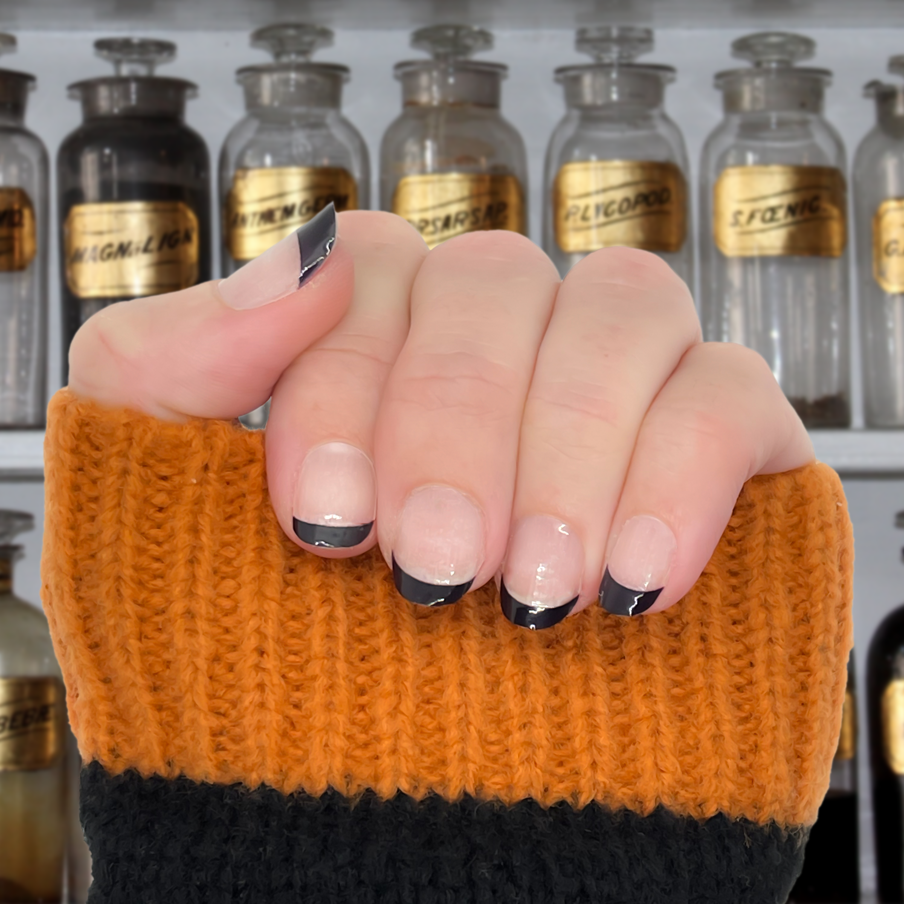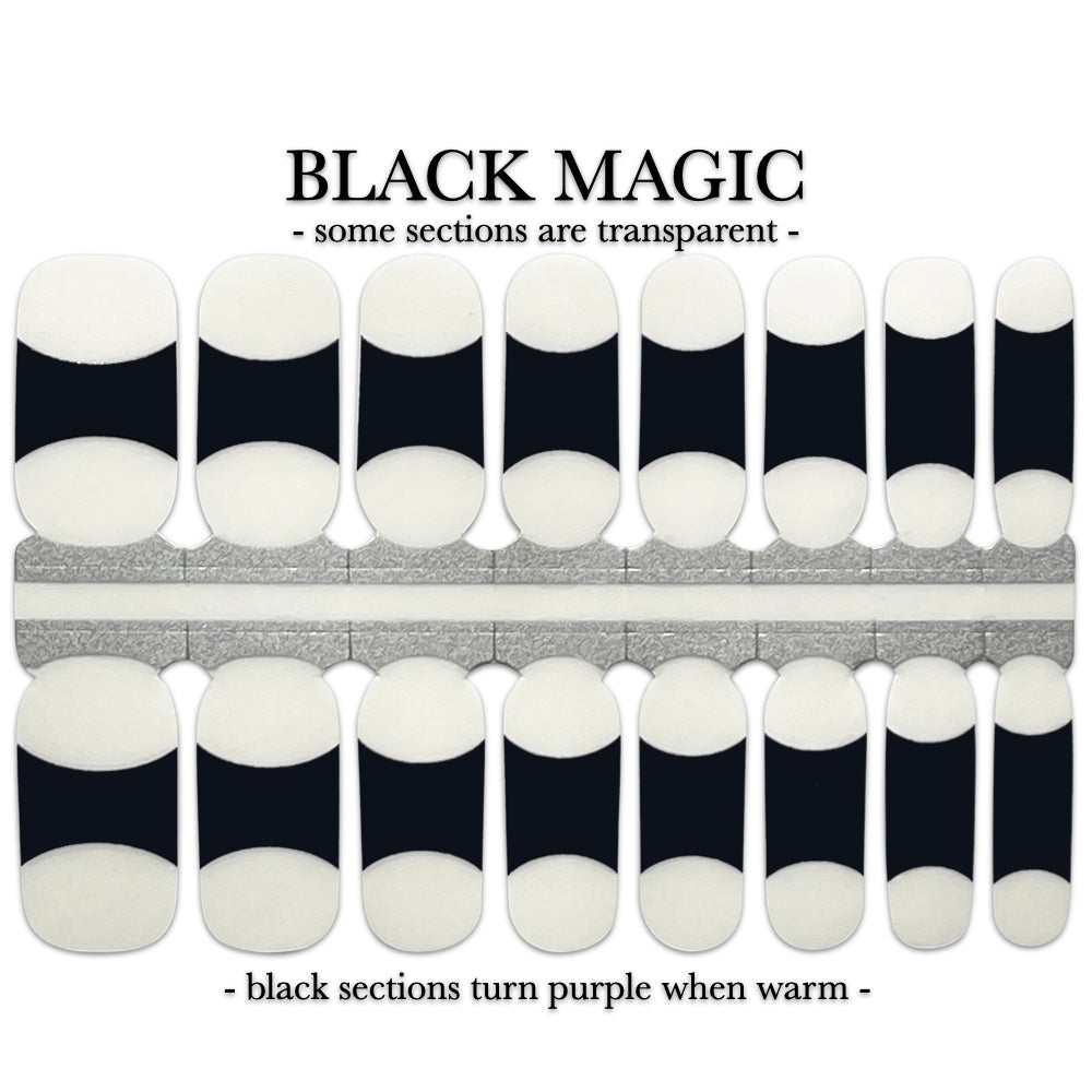 Transform your nails with our Nail Wrap in Black Magic! Watch as the color changes from sleek black to a vibrant purple with a classic french tip style. Make a statement and stand out with this mesmerizing product.