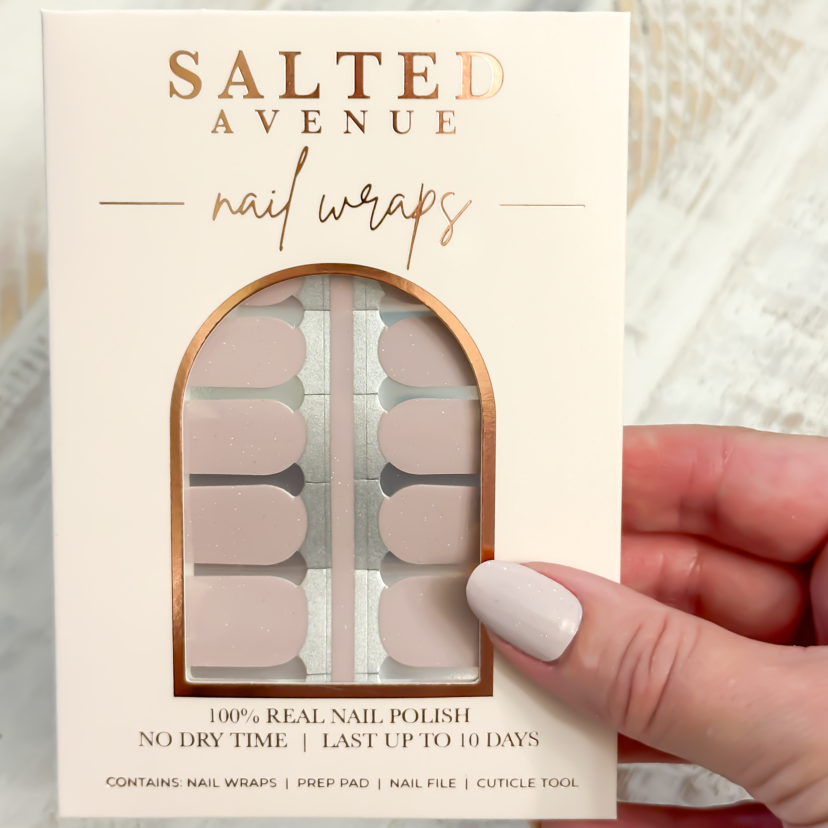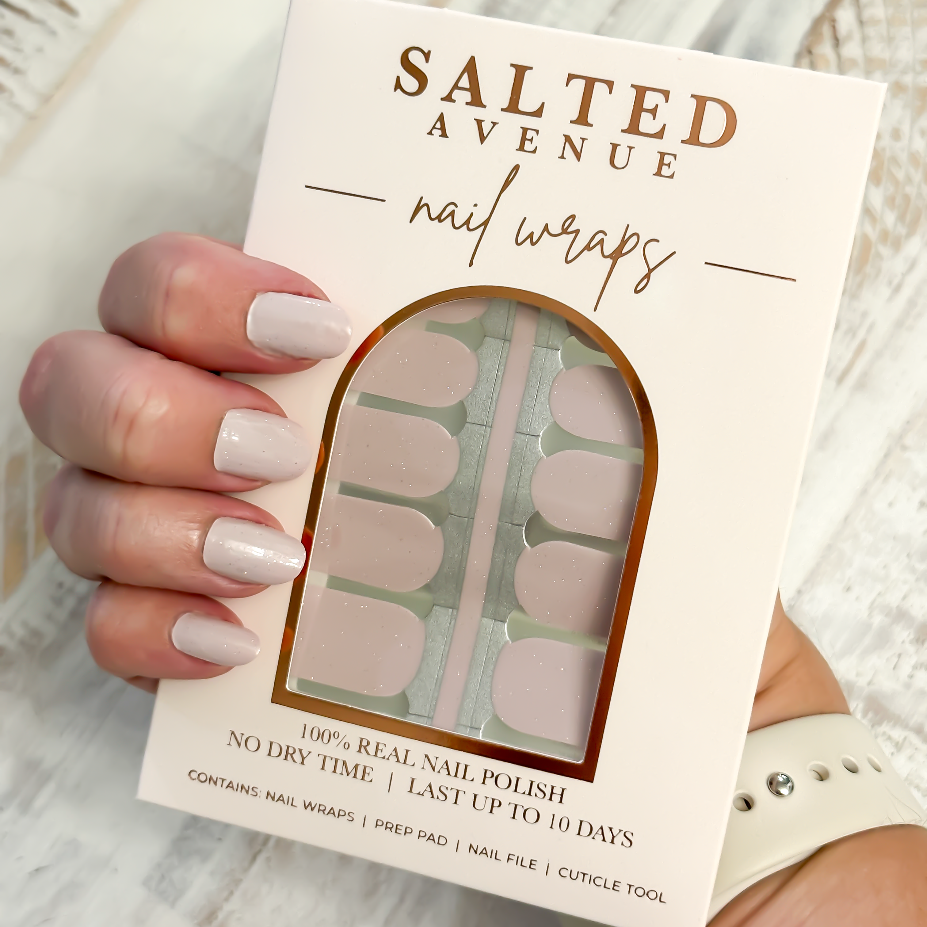 Add a little sparkle to your day with Nail Wrap - Glisten! Featuring a chic neutral shade with hints of subtle glitter, these wraps make your nails shine without stealing the spotlight. Easy to apply and perfect for any mood, they’re your new go-to for a playful yet polished look.