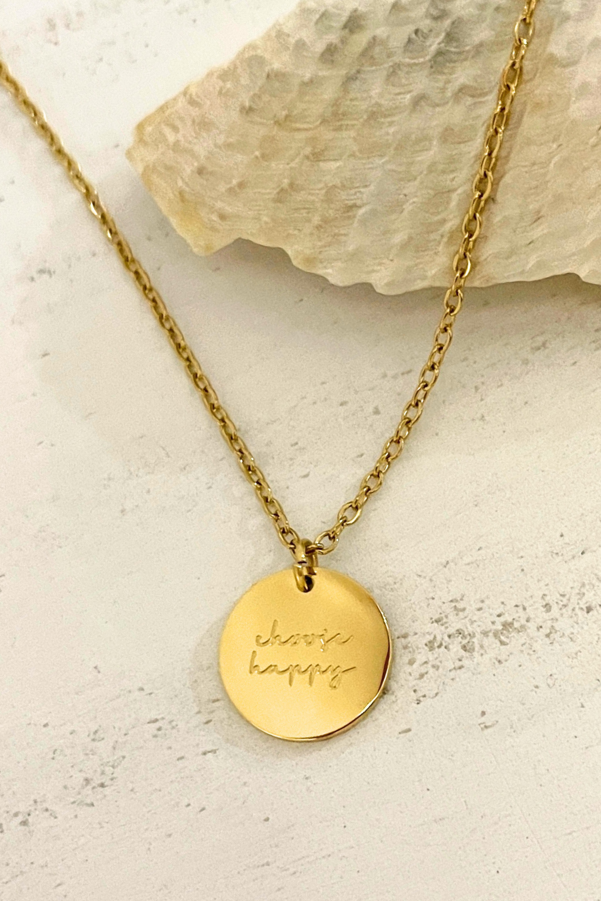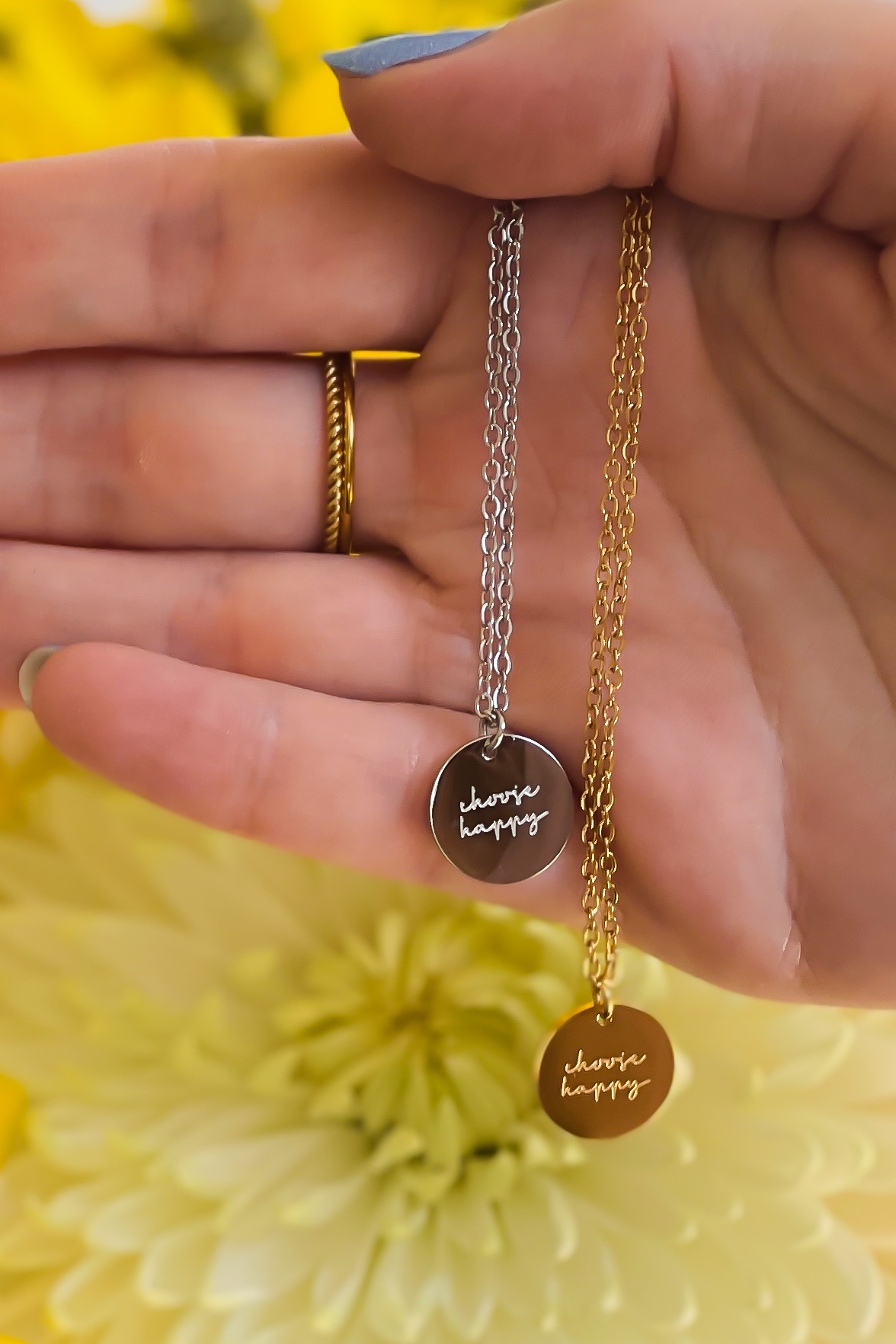 Our Choose Happy Necklace is the perfect reminder to focus on the positive and make the choice to be happy every day. This necklace is a gentle reminder to practice gratitude and embrace joy.