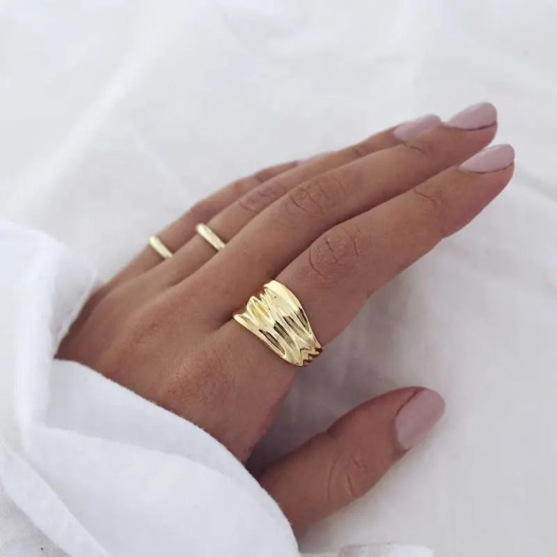 Embrace a bold and modern look with our Chunky Wave Ring. The thick, wavy design adds a touch of luxury to any outfit.