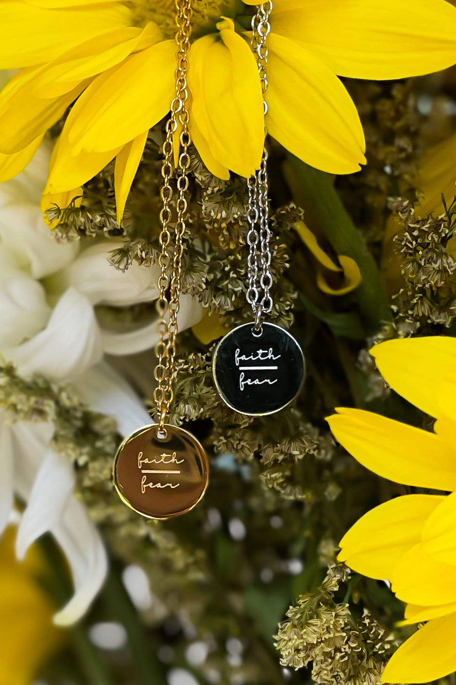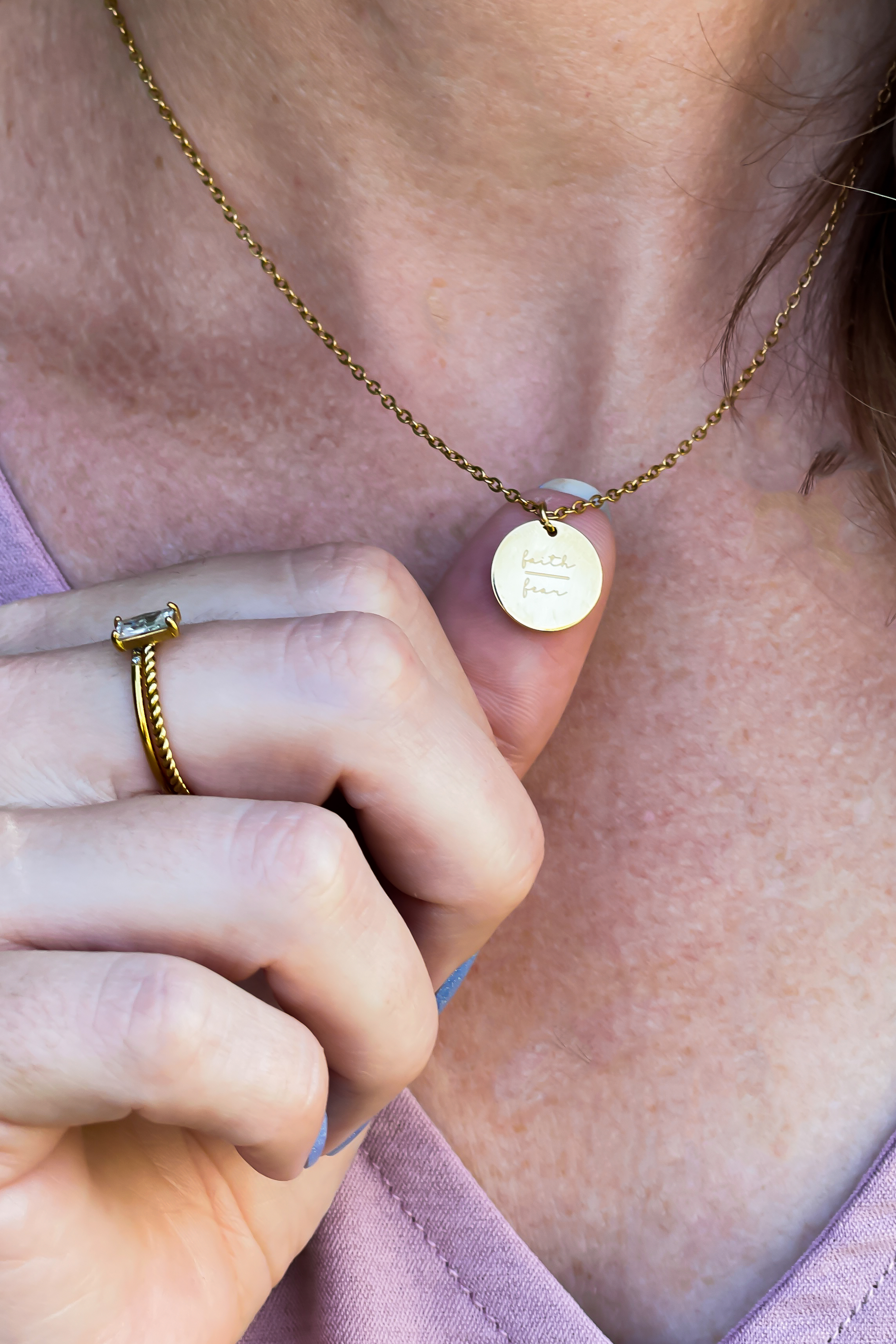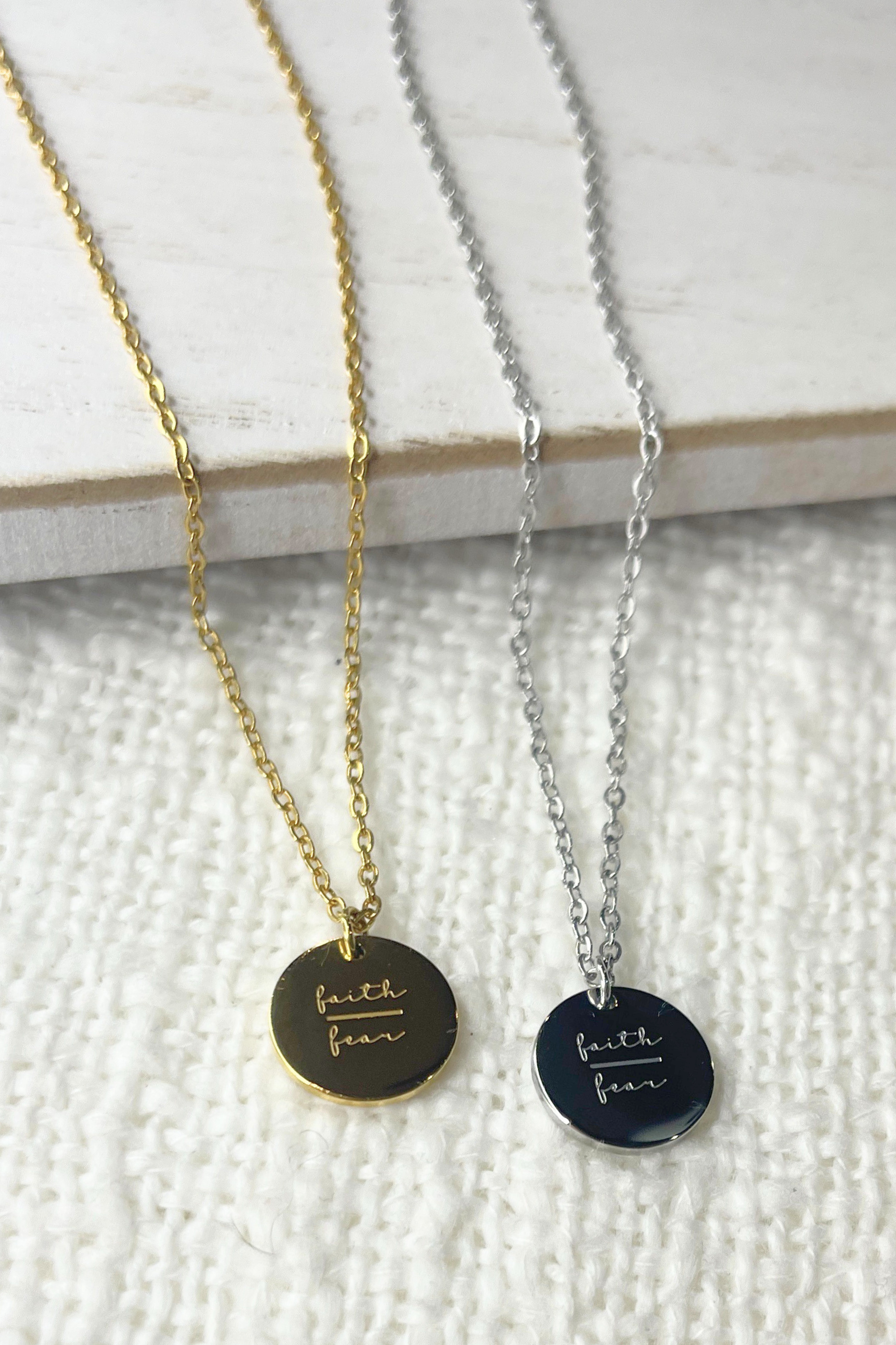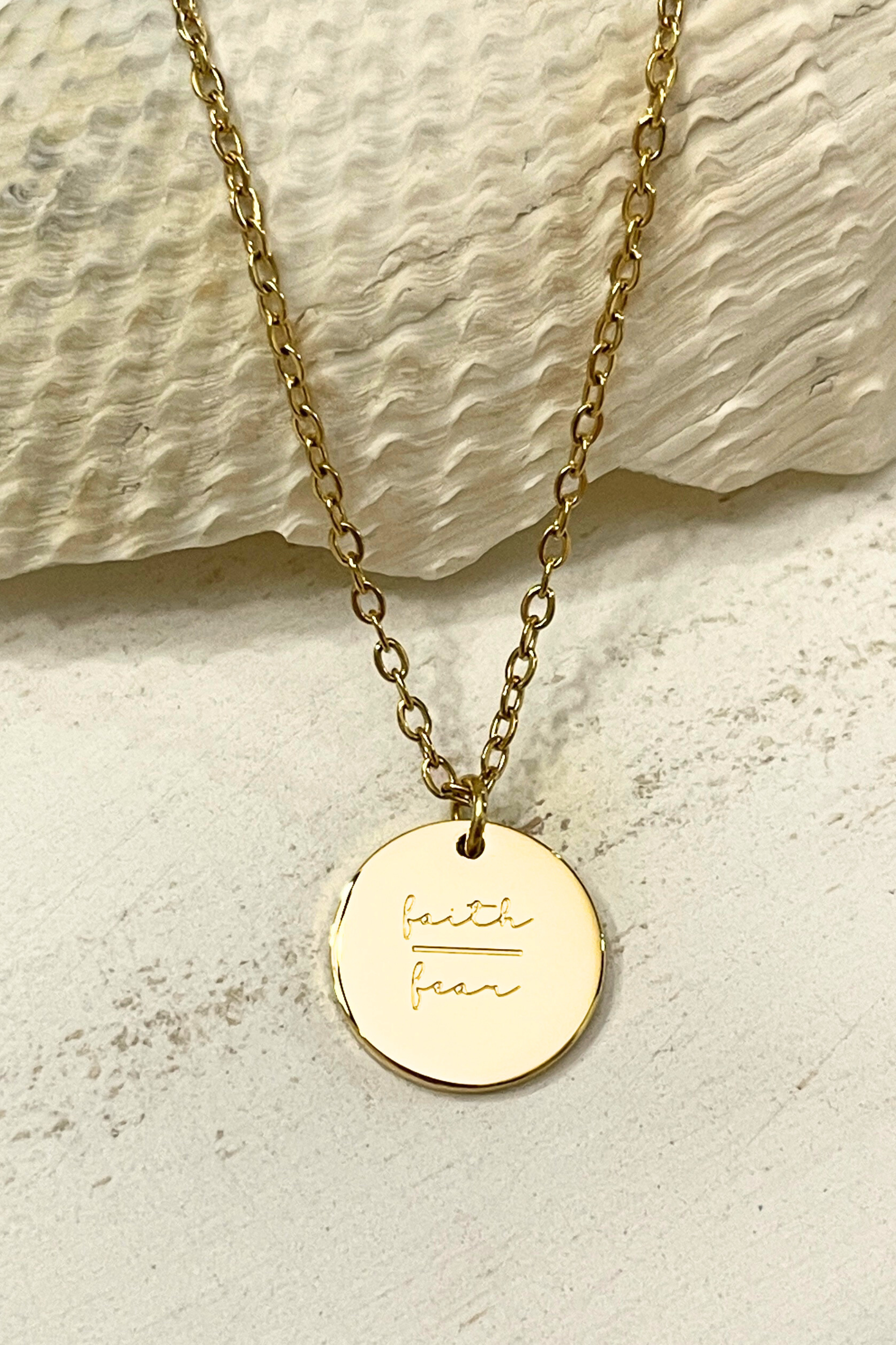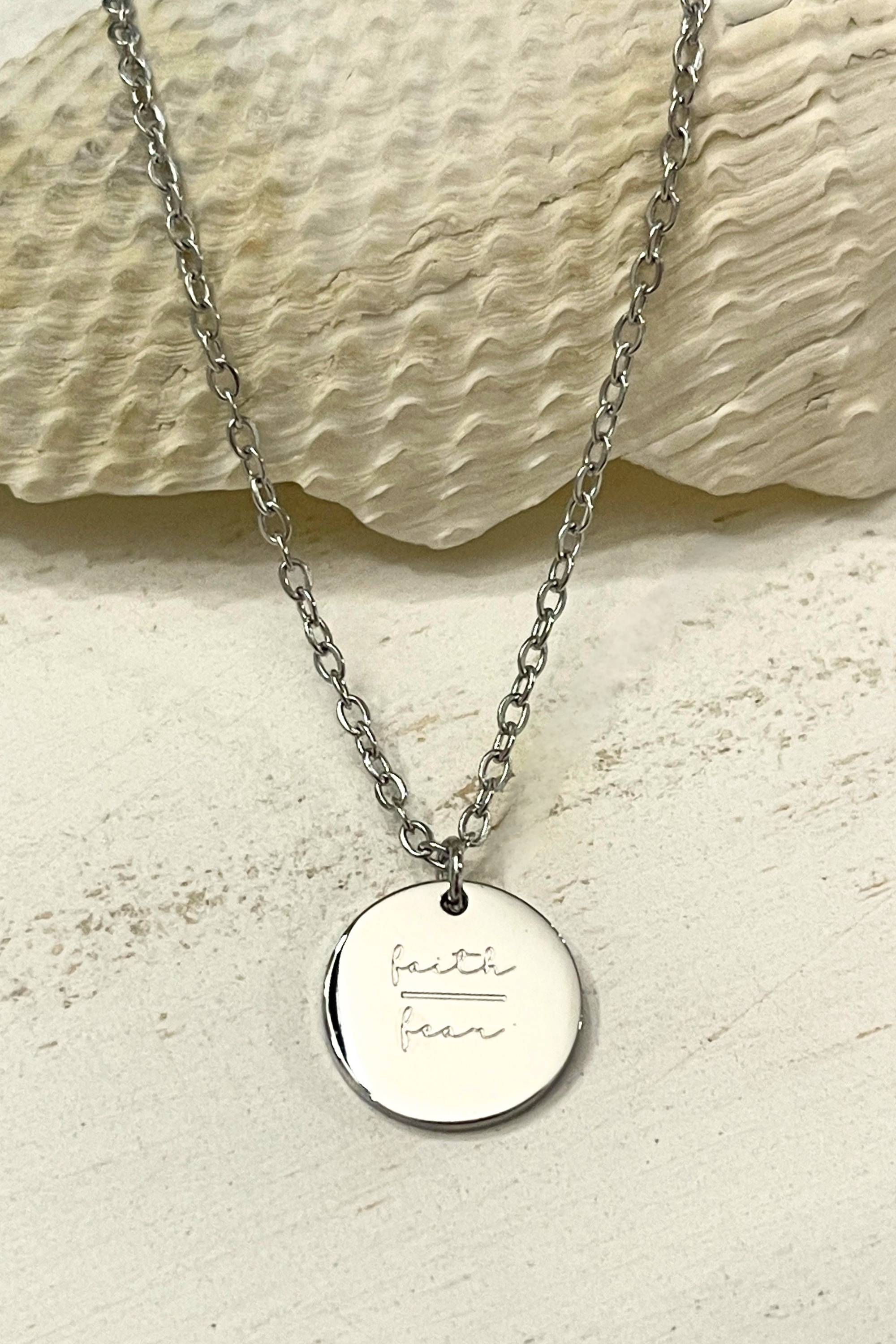 This Faith/Fear Necklace provides you with a tangible reminder that even in the most challenging moments of life, you can find strength and courage. Open your heart to new possibilities and embrace uncertainty. Let this necklace guide you in your journey of faith, no matter what roads you travel.