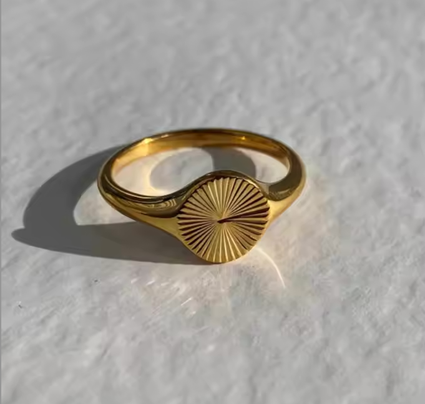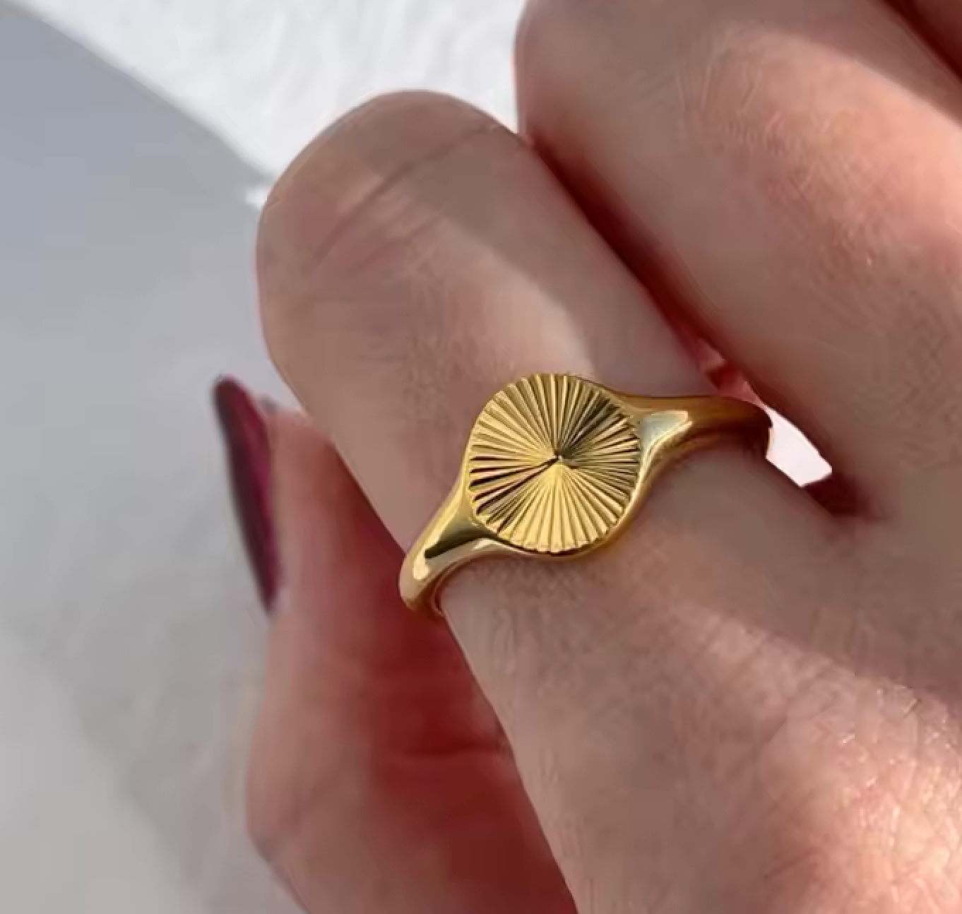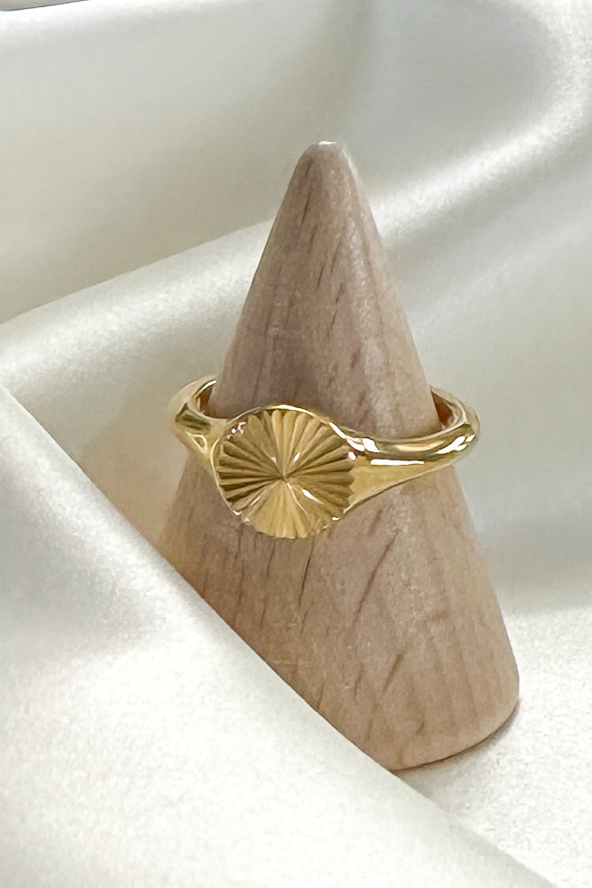 Introducing the Starburst Ring - This playful ring features a unique textured sunshine burst, it's an accessory that will brighten up everyone's day!