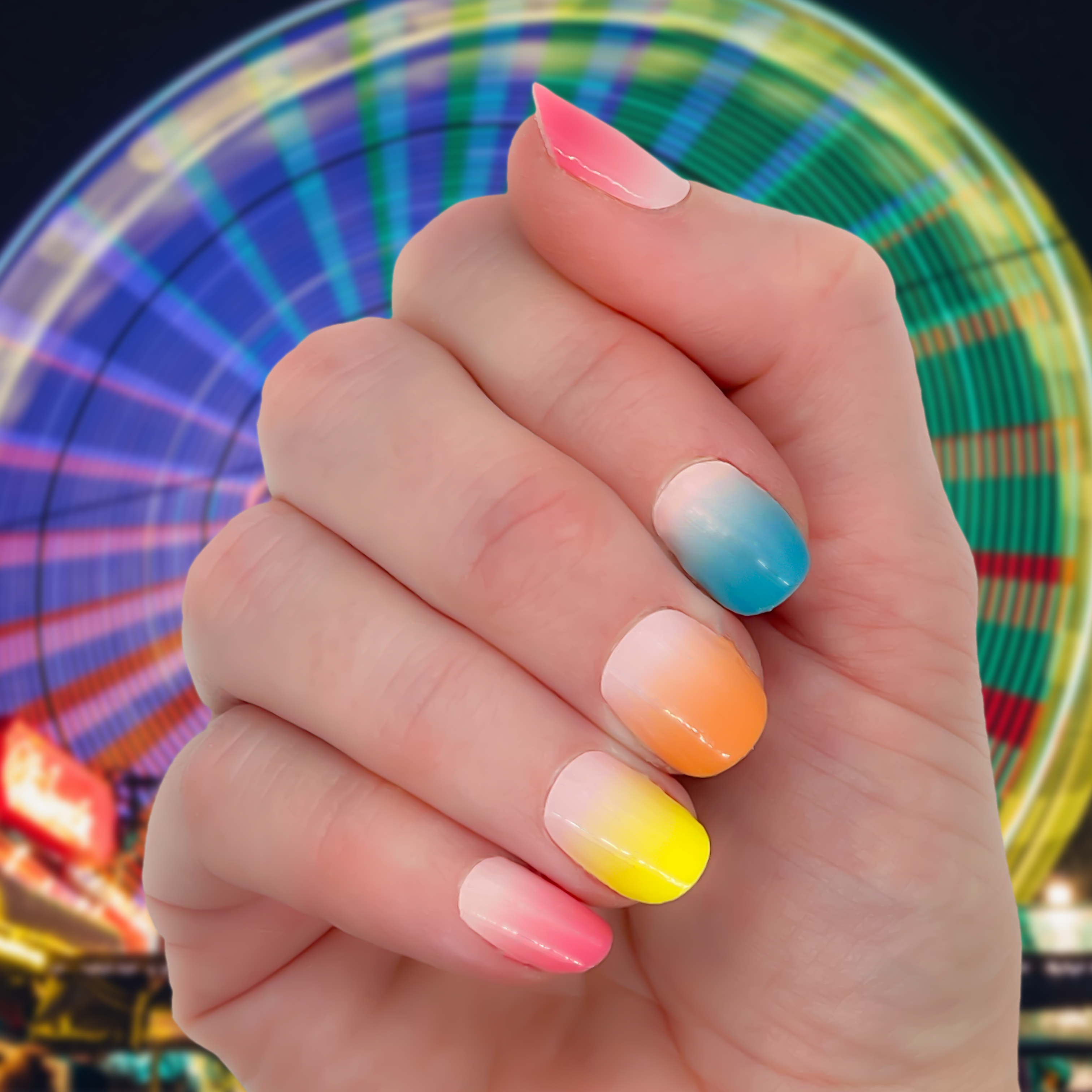 Our Nail Wrap - Color Wheel is designed for the creative and fashion-forward. Enjoy the unique ombré effect of bright, fun colors across each nail, giving you a bold and stylish look. Shine with the perfect combination of artistry and confidence!