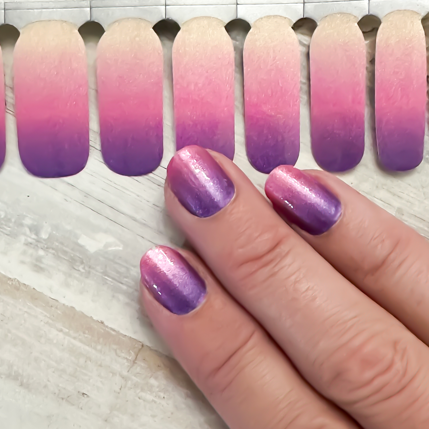 Transform your nails with the stunning Purple to Pink Ombré Nail Wrap featuring a luxurious pearl finish. This Fusion design effortlessly blends vibrant hues for a smooth gradient look that lasts. Easy to apply and more durable than regular polish, it offers a salon-quality manicure at home. Elevate your style with this eye-catching wrap that adds a subtle shimmer and bold color progression to your fingertips. Perfect for anyone seeking a chic, long-lasting nail statement without the fuss.