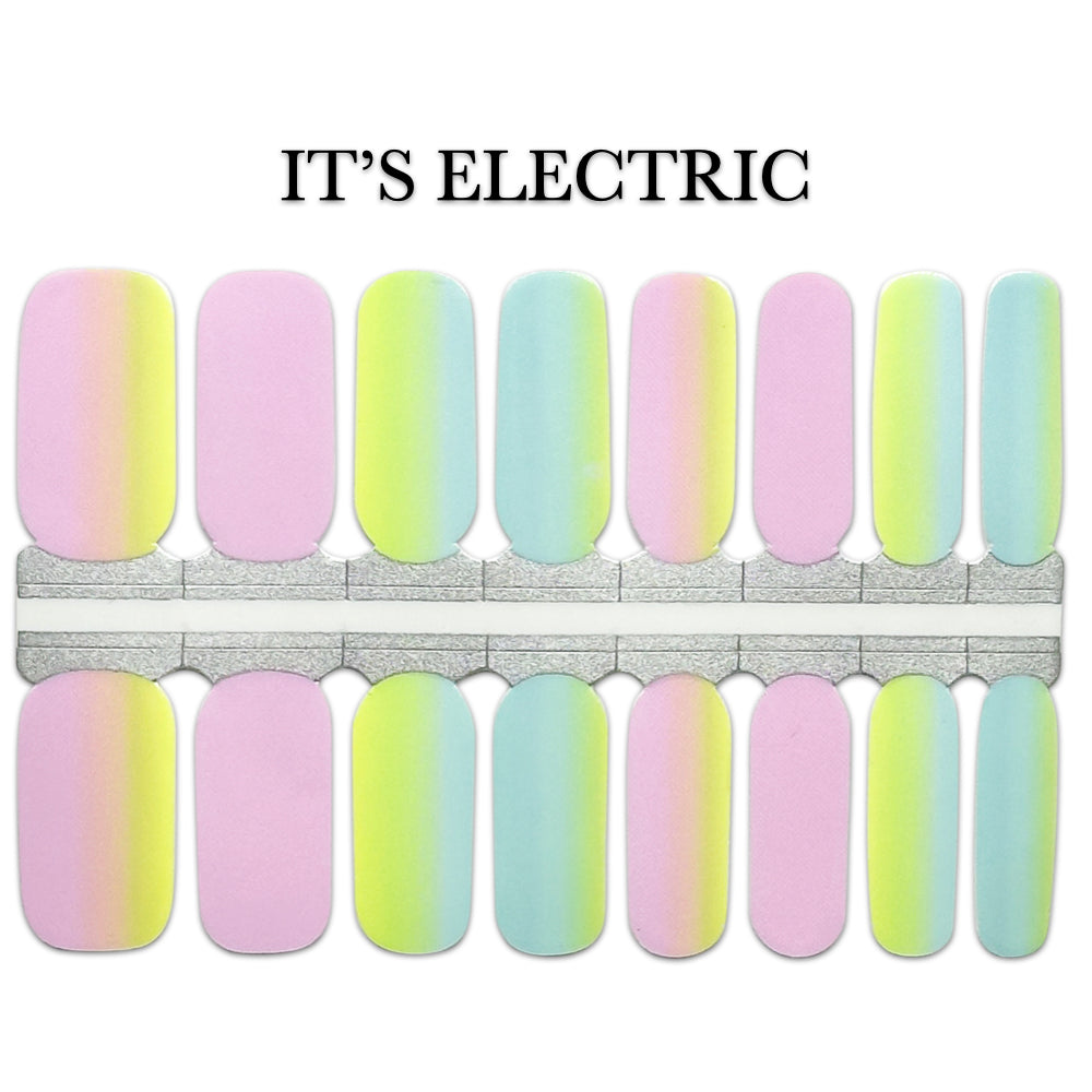 Add a burst of vibrant energy to your nails with these playful "It's Electric" nail wraps. Featuring neon colors in a stunning ombre design, they bring a fun, eye-catching glow to your fingertips. Easy to apply and perfect for making a bold statement, these wraps let you electrify your look in minutes!