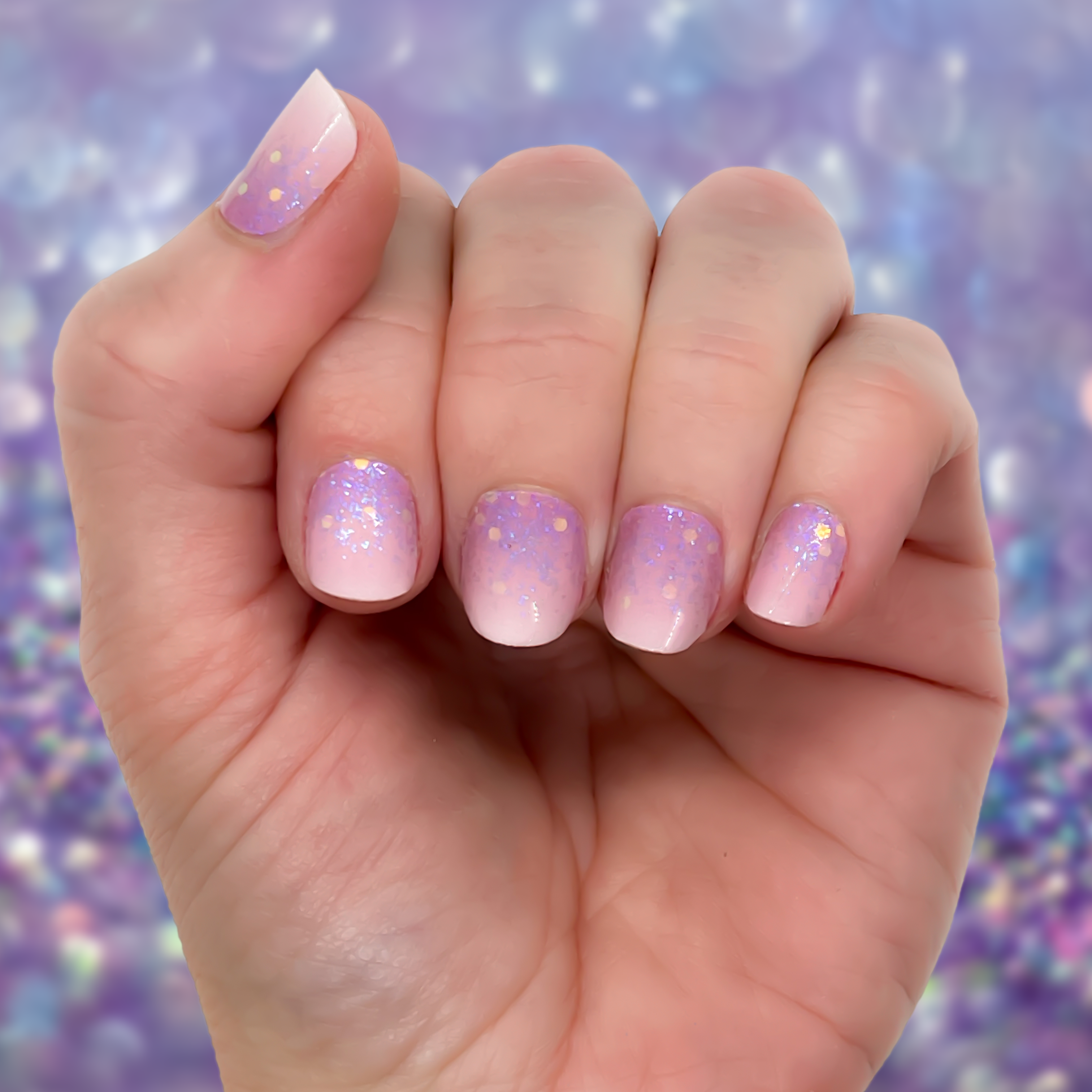 Add a touch of fun and color to your nails with the trendy Nail Wrap - Sparks Fly! This purple to pink ombré wrap is sprinkled with flecks of glitter, making your nails sparkle and shine. Say goodbye to boring nails and hello to a playful and stylish look!