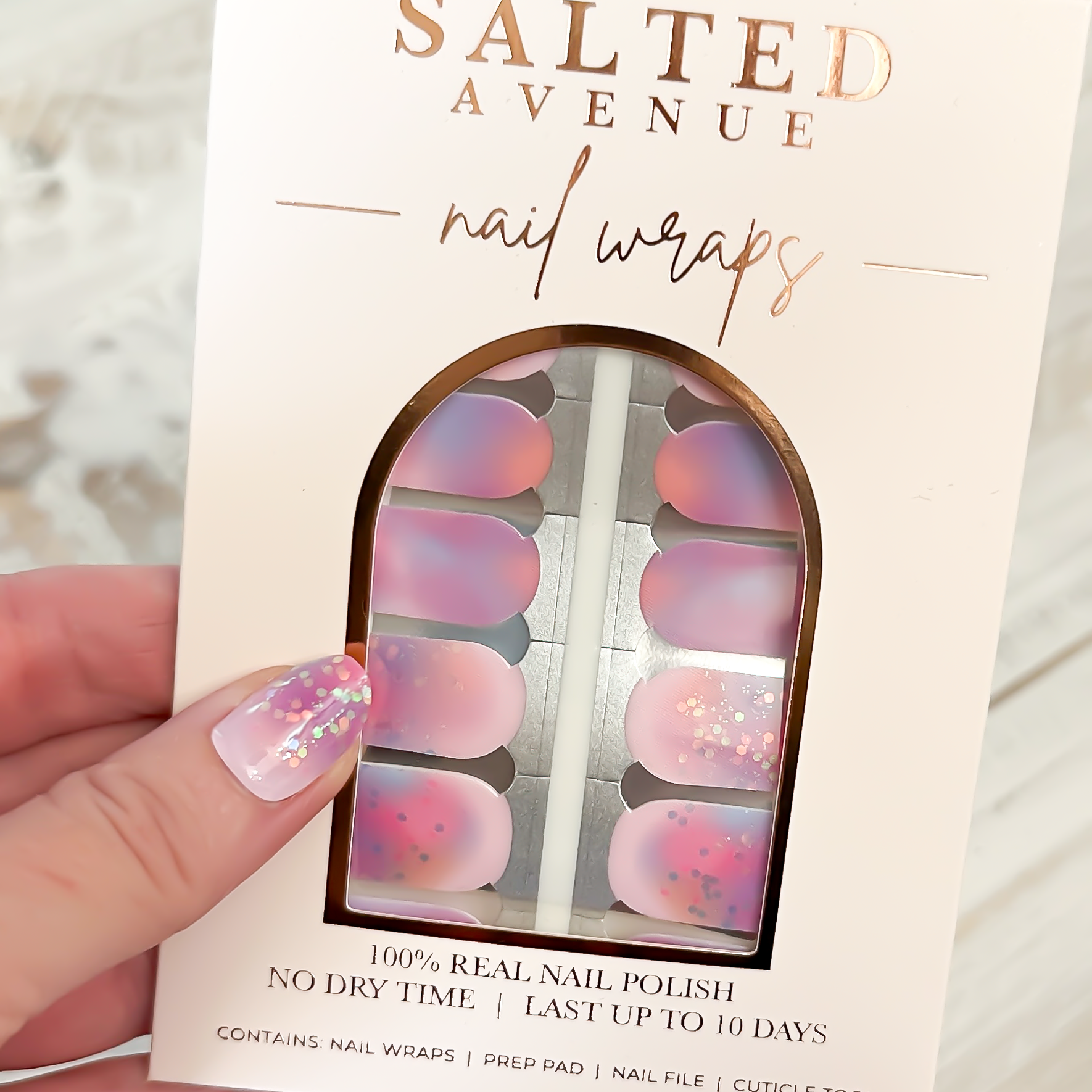 - PREP- your nails with an alcohol wipe and cuticle pusher (1 included in each shipment)