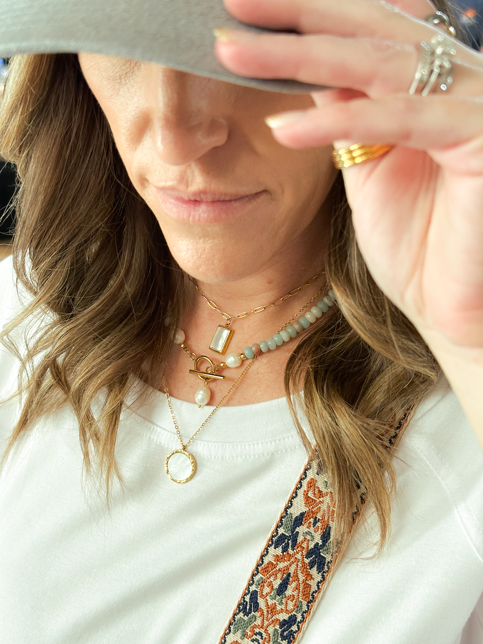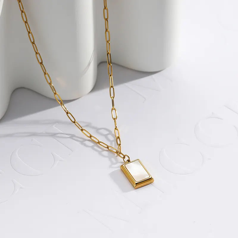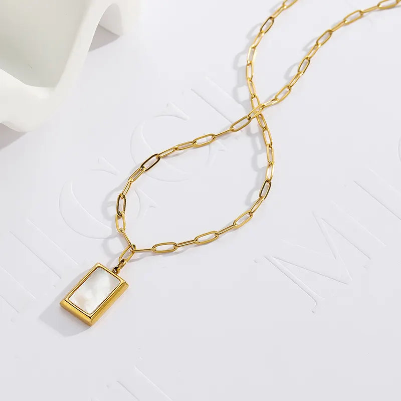 A little bit coastal, a little bit chic—our Pendant Shell Necklace is the perfect blend of effortless elegance and beachy vibes. Suspended from a sleek paperclip link chain, the white rectangular shell pendant catches the light just right, making every outfit shine. Wear it solo for an elegant look or layer it up for a more fun and casual look!