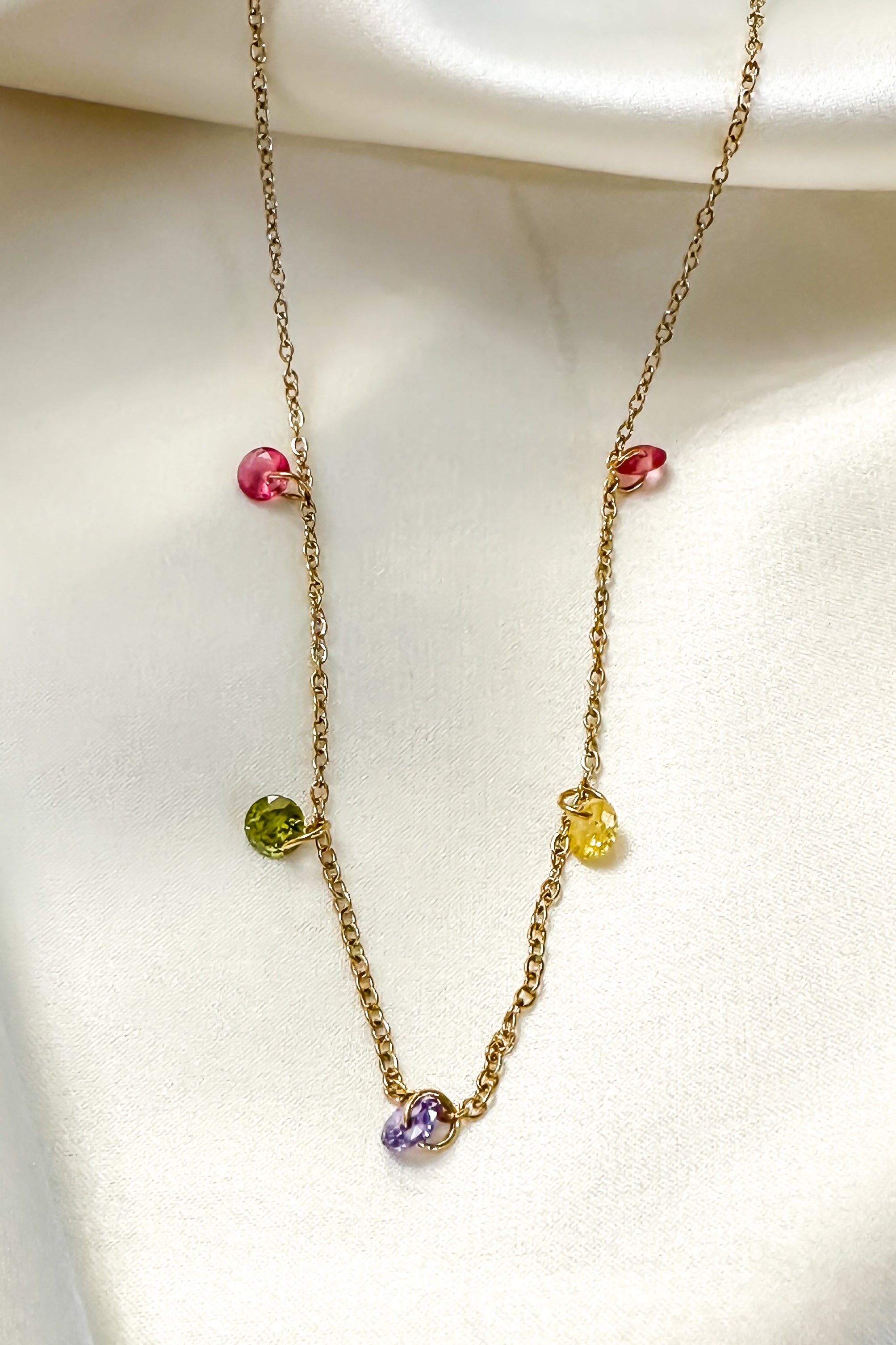 Add a splash of color to your day with this playful Multi Colored Gem Necklace. Five tiny gems sparkle along a delicate gold chain that’s perfect for layering or wearing solo. Plus, with an extender, you can easily switch up the length to match your mood or neckline. Bright, light, and endlessly charming!
