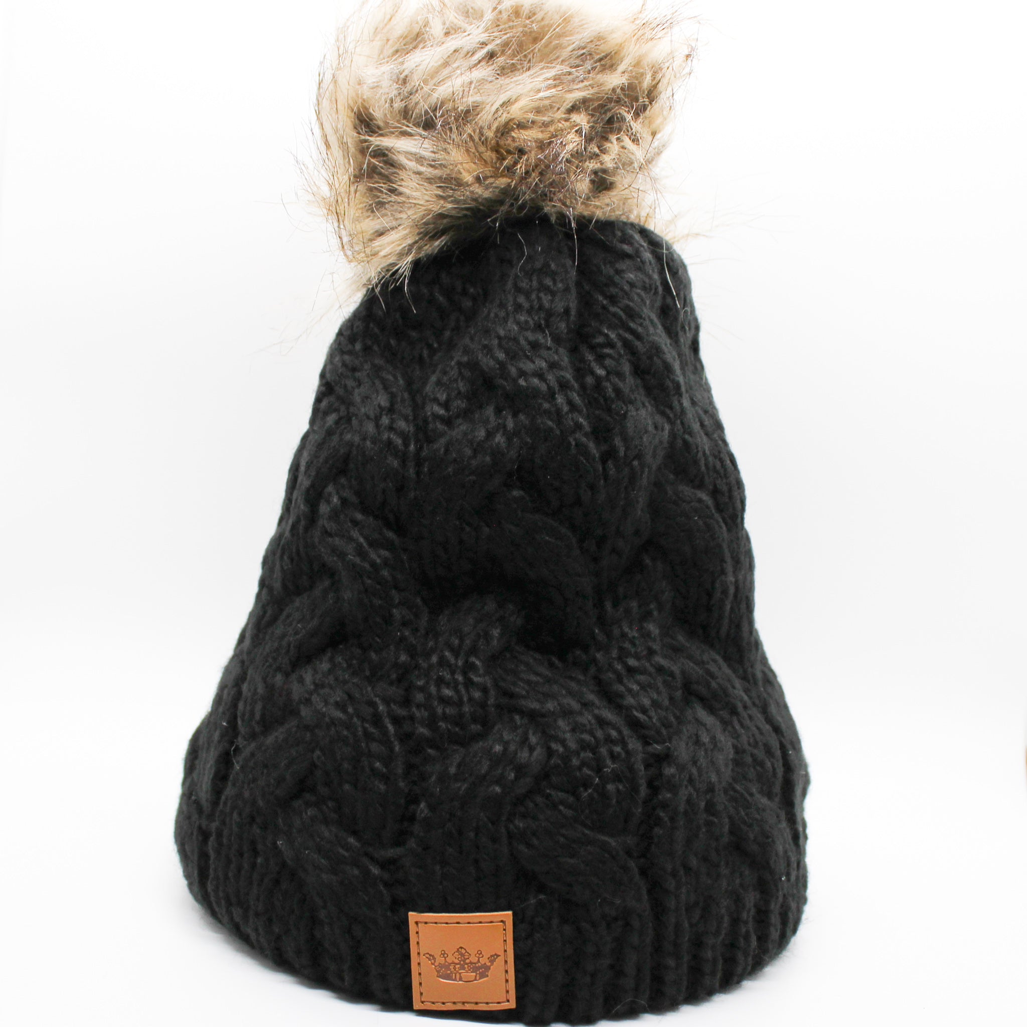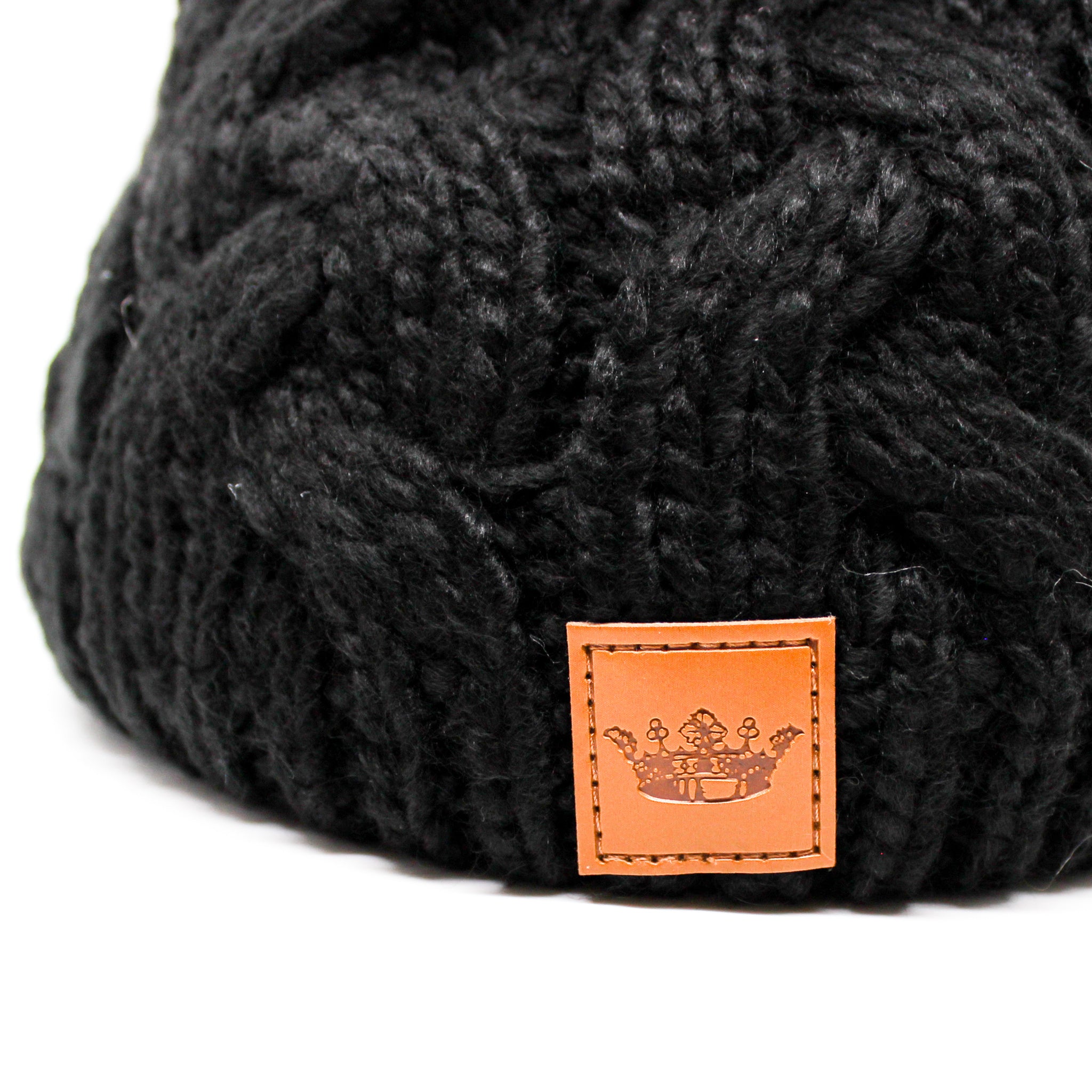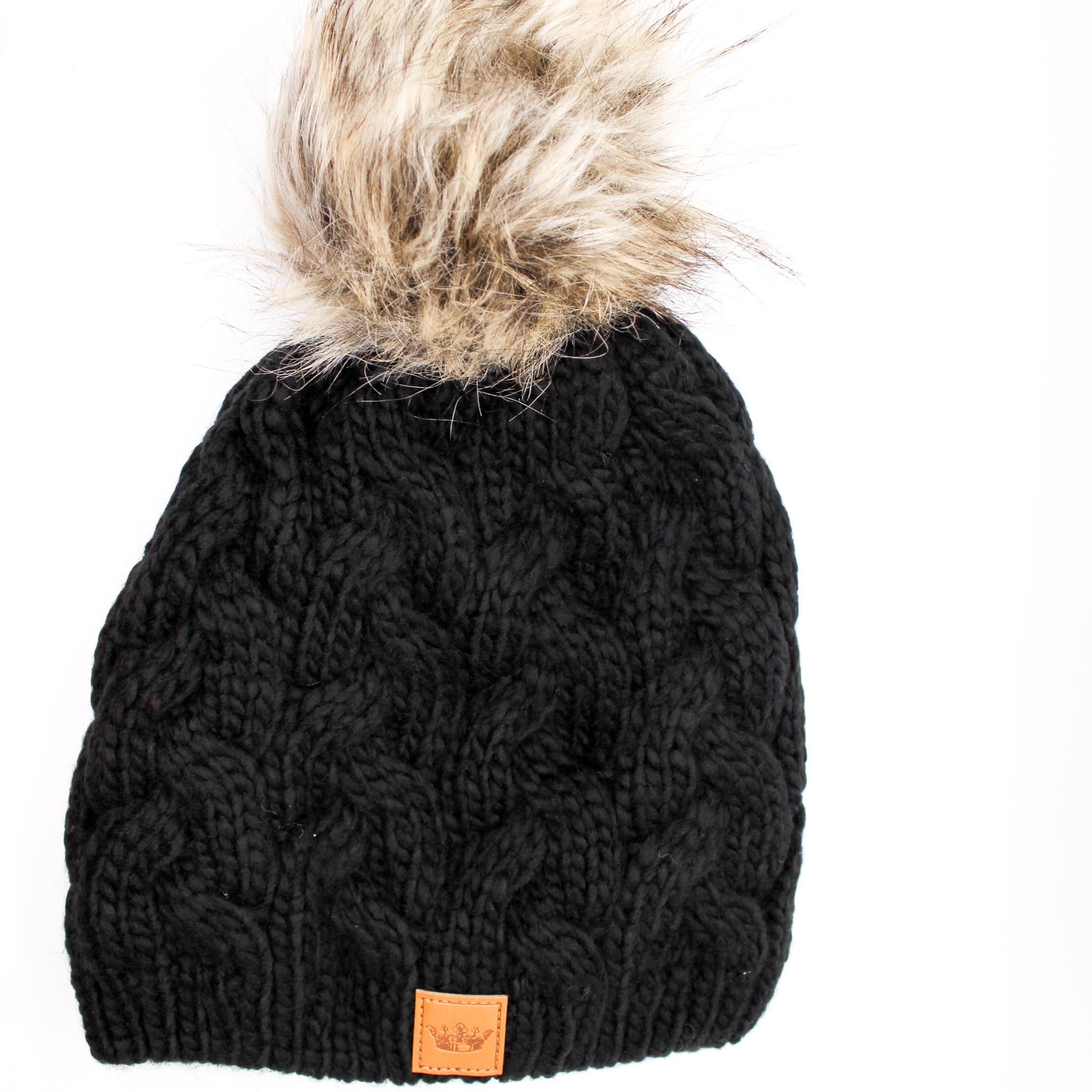 Black Cable Knit Pom Pom Beanie