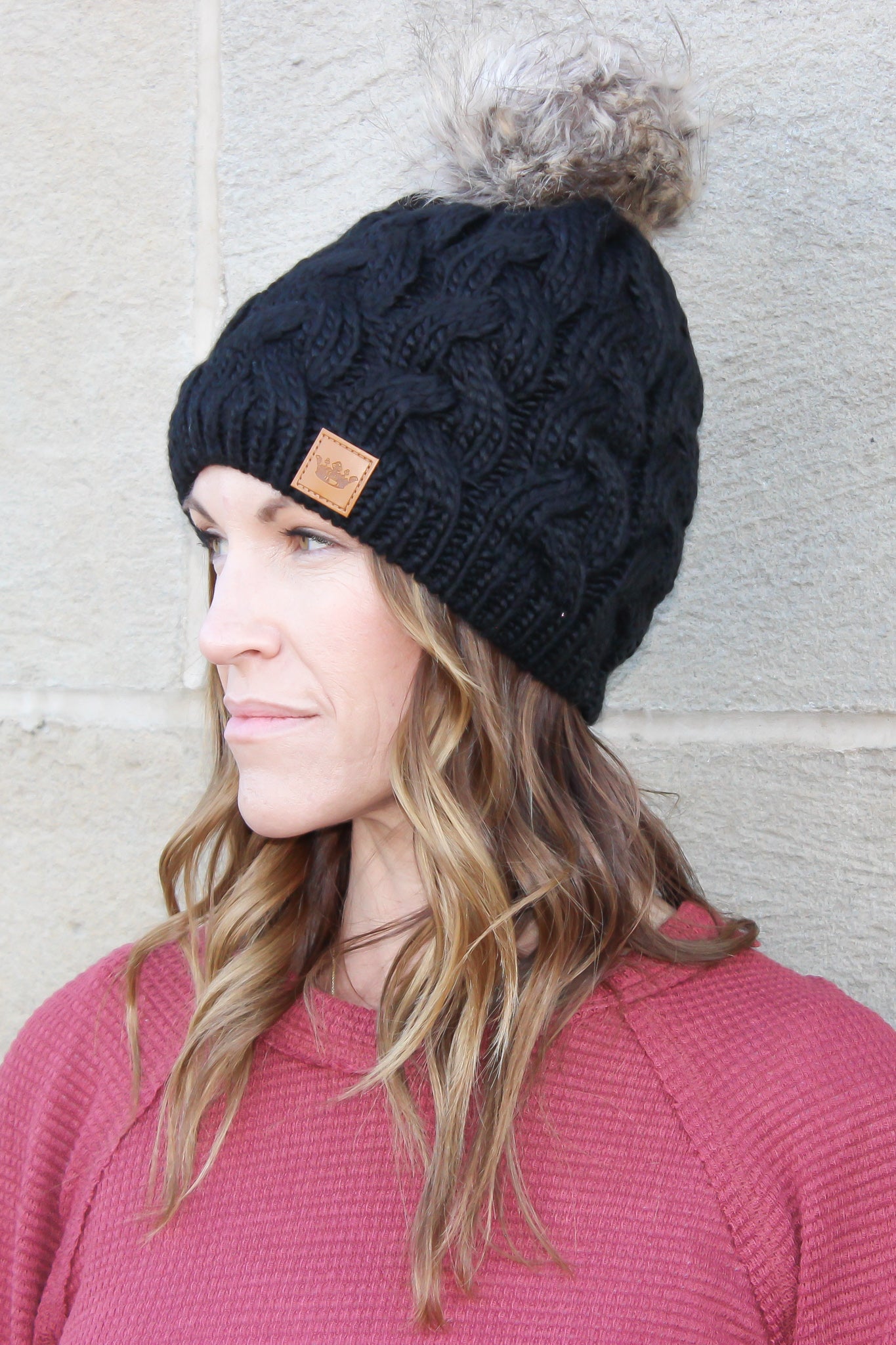 Hurray for beanie weather! Get your cozy on with this Cable Knit Hat with Pom Pom