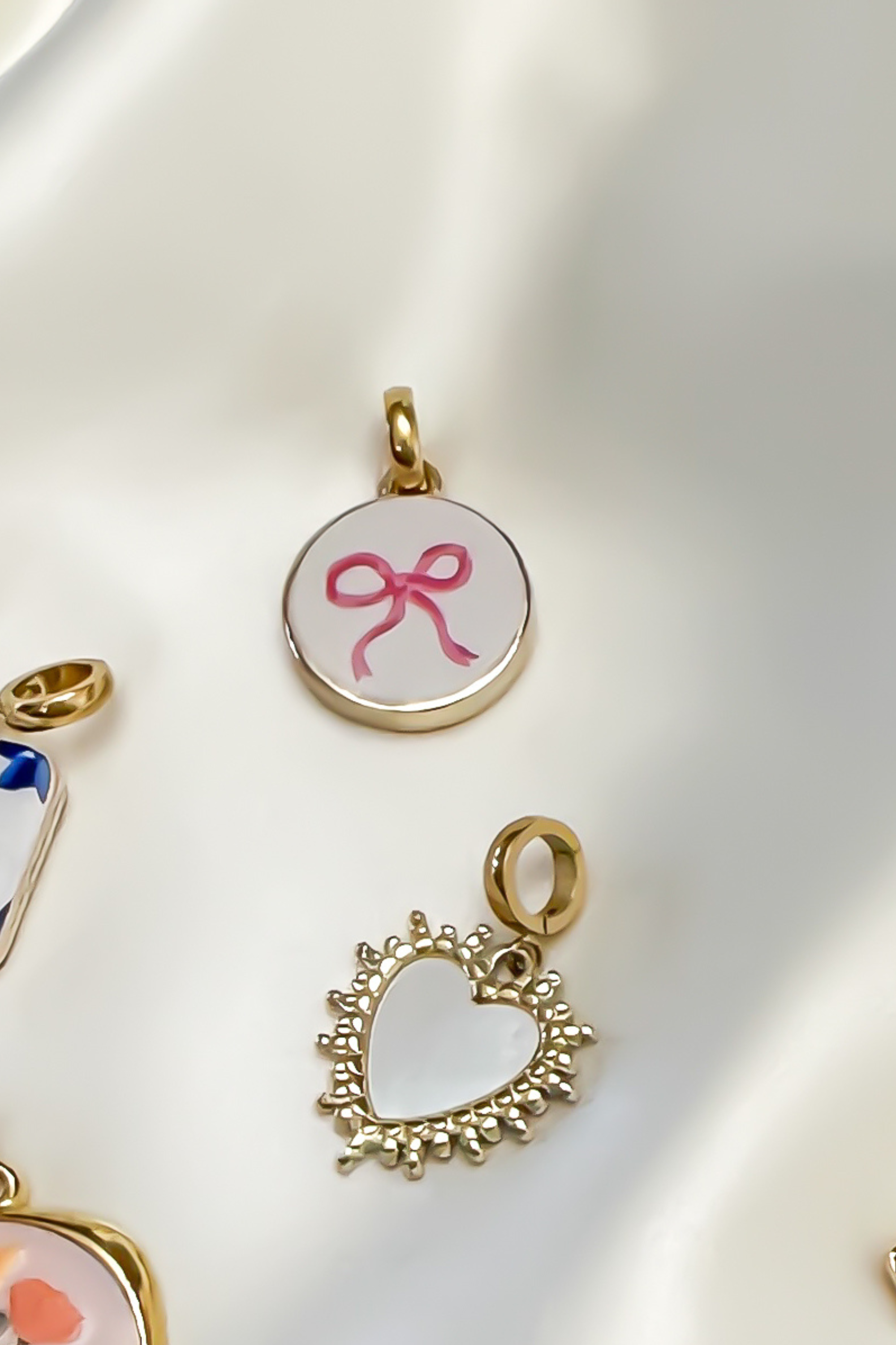 Bring a touch of sweetness to your everyday style with our Pink Bow Porcelain Charm. Featuring a delicate hand-painted bow centered on a glossy porcelain round, this charm blends femininity with timeless elegance. The polished gold frame adds warmth and contrast, making it the perfect charm for soft, romantic styling or as a meaningful symbol of love, gifting, or celebration.