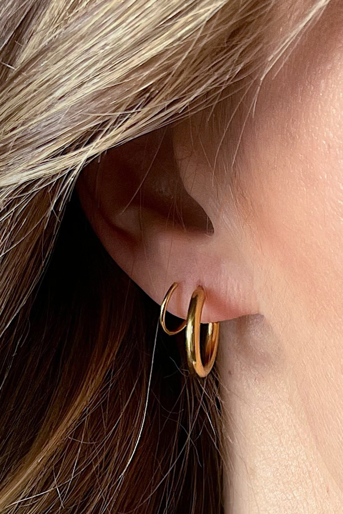 Want the double piercing look with only a single piercing? Then our double twist hoop earrings are perfect for you.