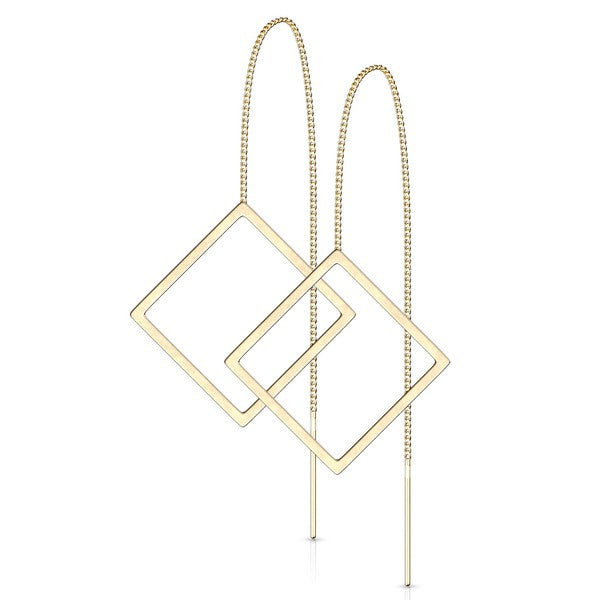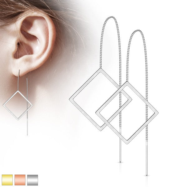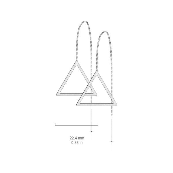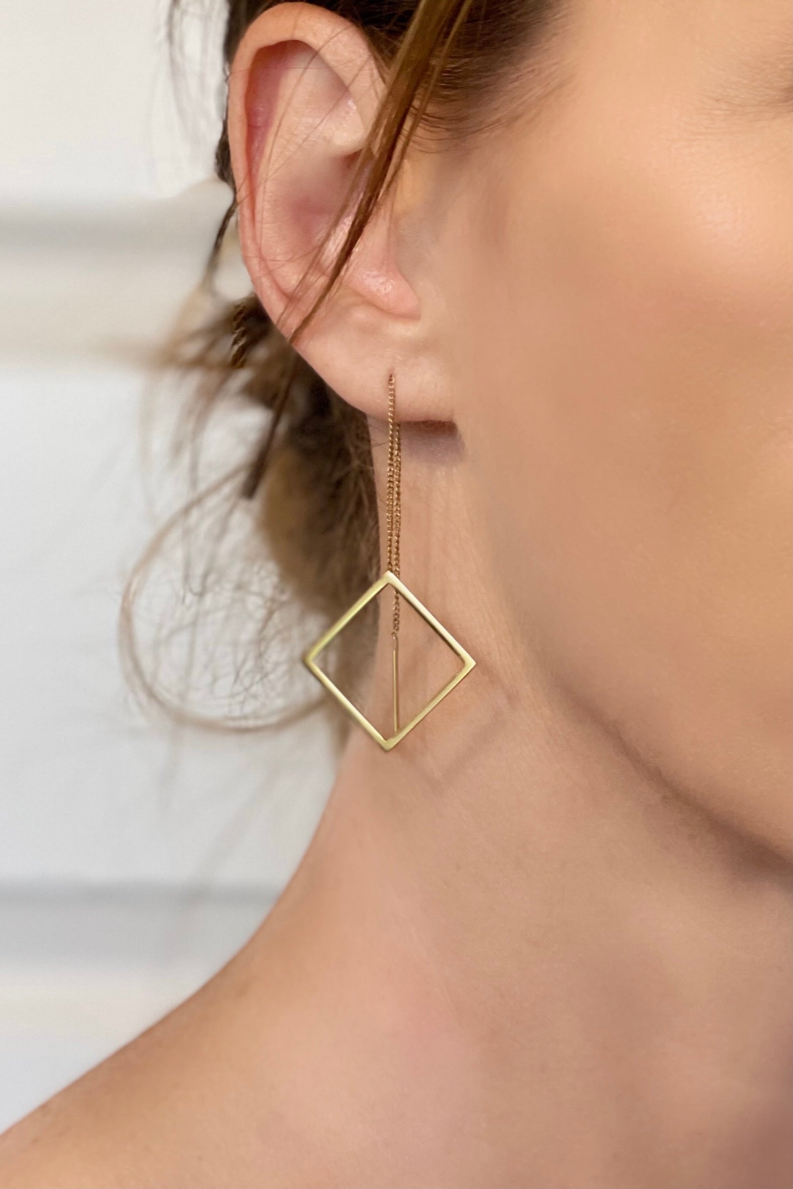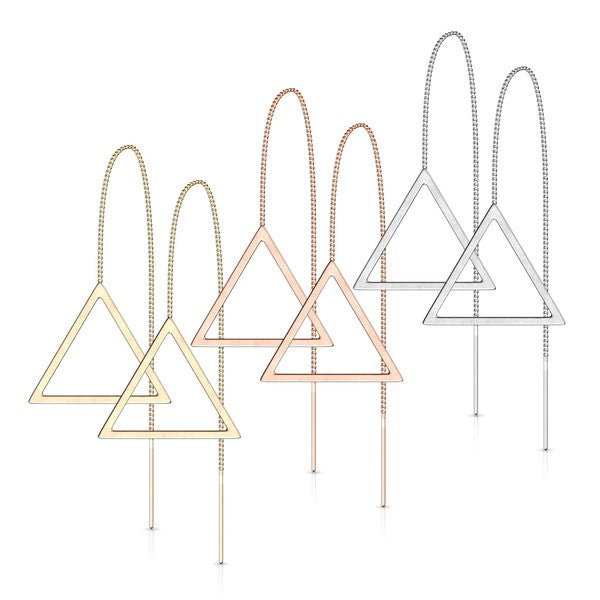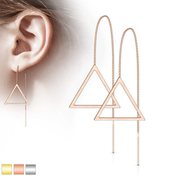 These edgy hollow out threader earrings feature diamond and triangle charms.