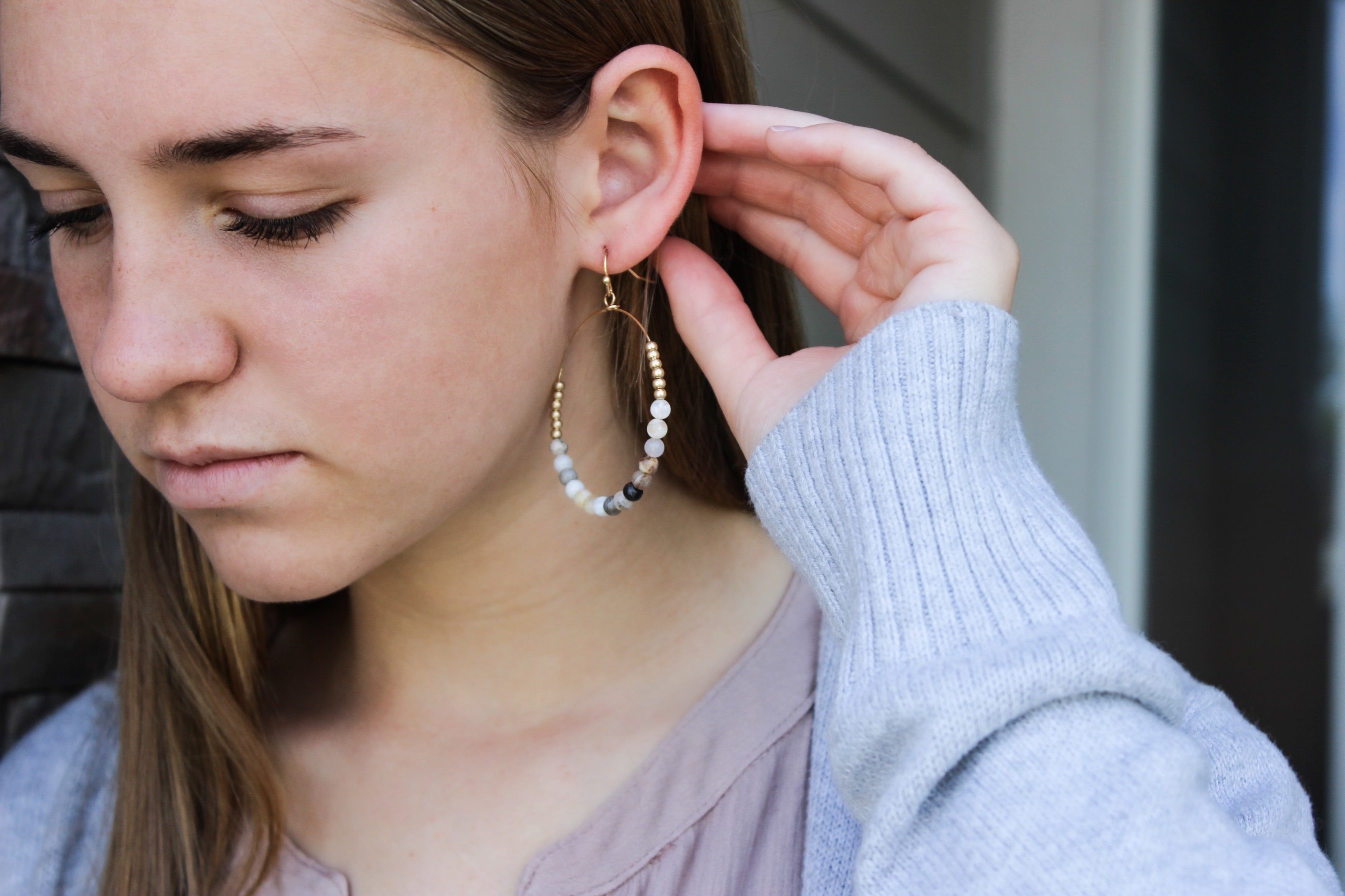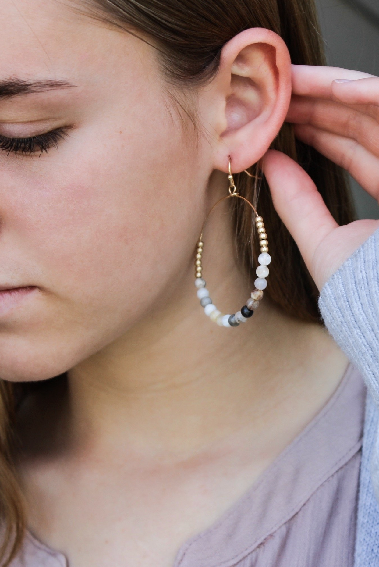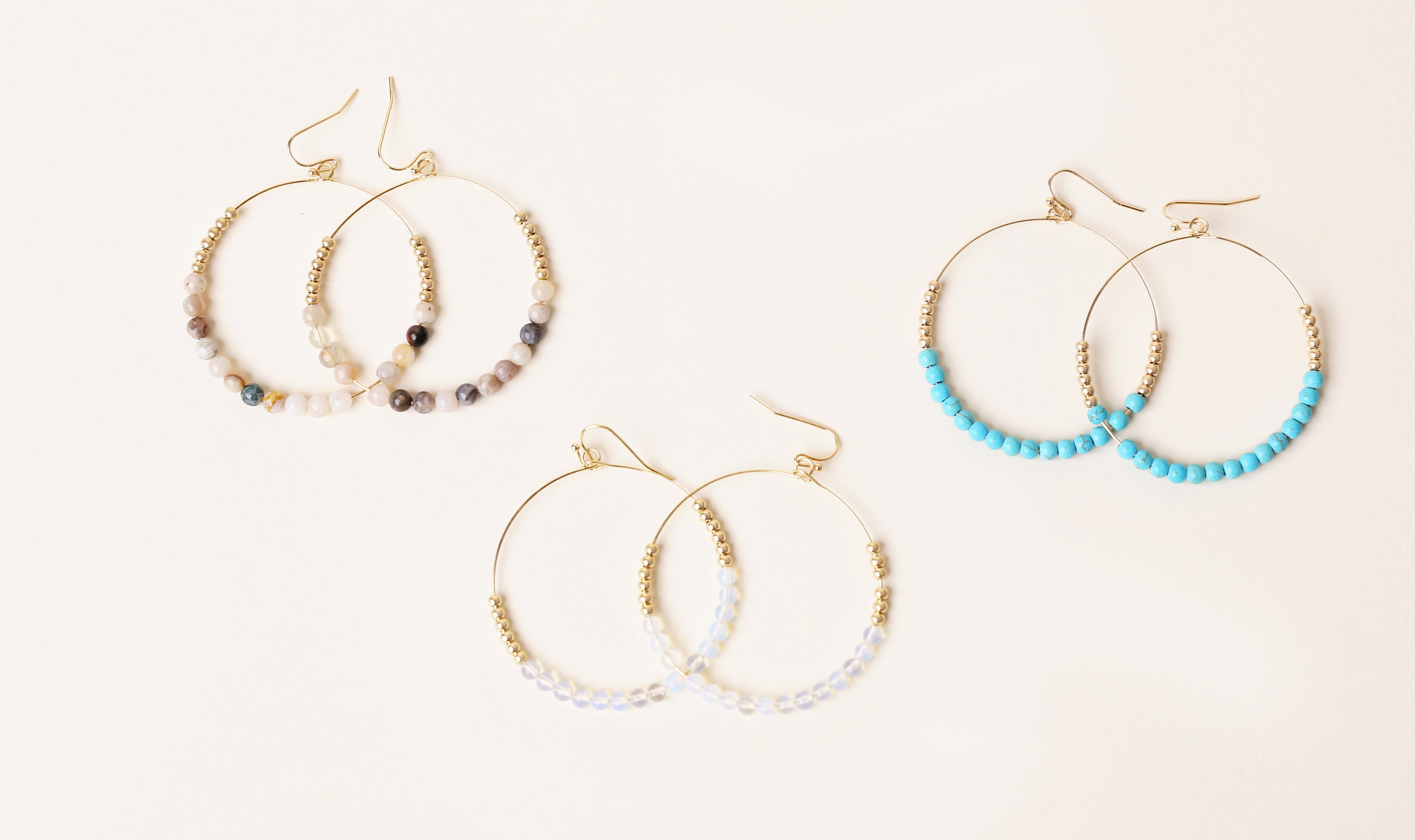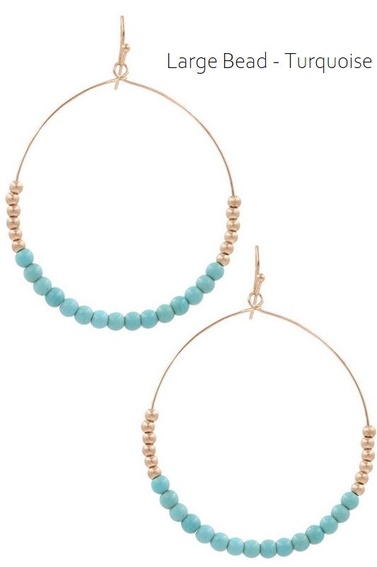 Fun, colorful beaded hoops set on a delicate gold wire.These earrings are great for any occasion.