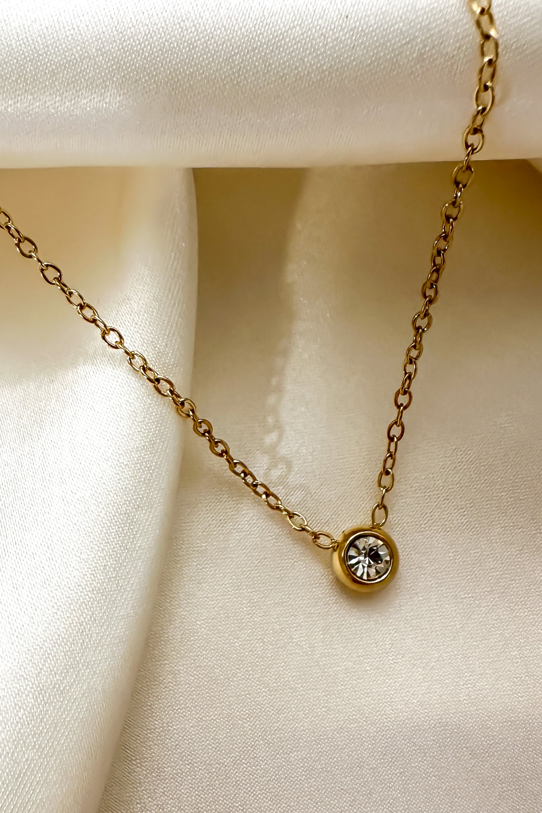 This Mini Sparkle Necklace features a tiny round cubic zircon delicately set on a dainty gold chain. With an adjustable extender, you can easily change the length for the perfect fit and playful shine, making it your go-to accessory for everyday sparkle!