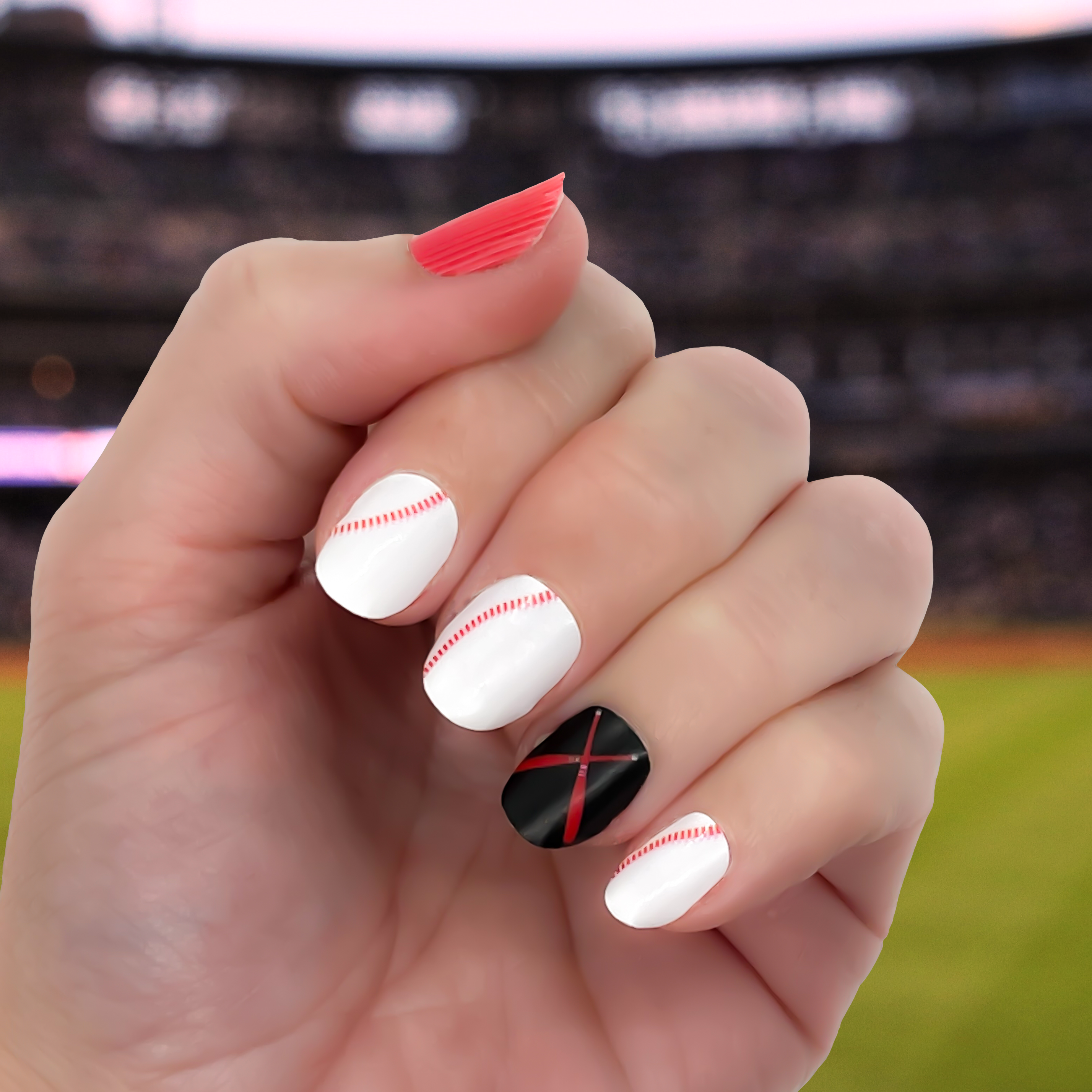 Welcome to the stadium of style! Our Batter Up nail wraps will make your nails look like an all-star from Spring to Fall. With its classic red, white and black baseball design, it's the perfect accessory for any team's biggest fan! Strike out those boring nails and swing for the fences with Batter Up!
