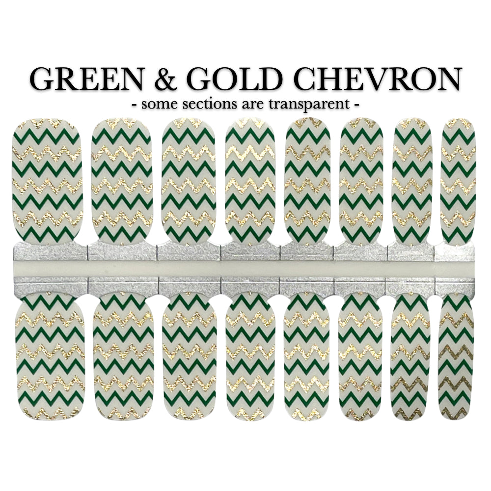 Add a pop of personality to your nails with our transparent nail wraps featuring a playful gold and green chevron design. Effortlessly stylish and fun, these wraps will have you showing off your nails with confidence.