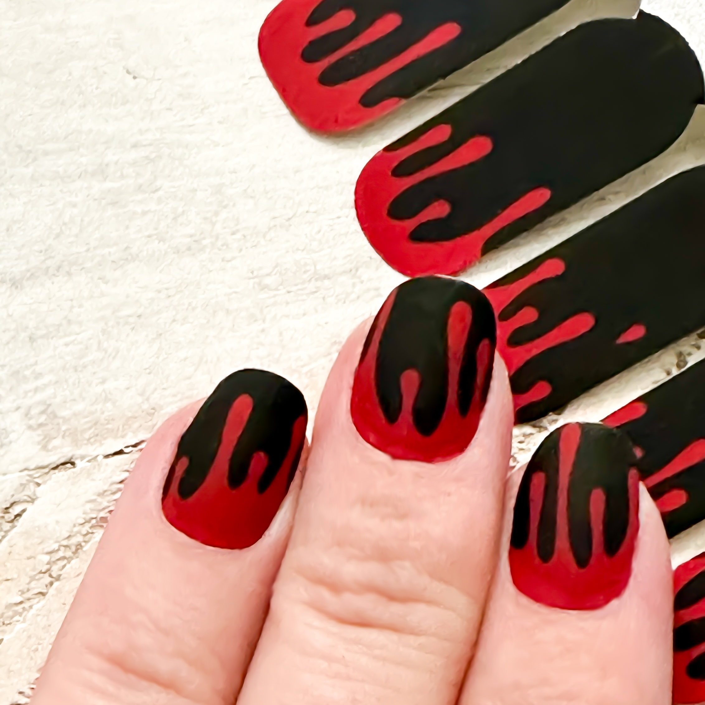 Get ready to spook everyone with our Nail Wrap - Halloween Drip! These black matte finish nails are unlike any other, with a realistic blood drip feature that will add the perfect touch to your Halloween look. No need for messy nail polish, just wrap them on and get ready to scare!
