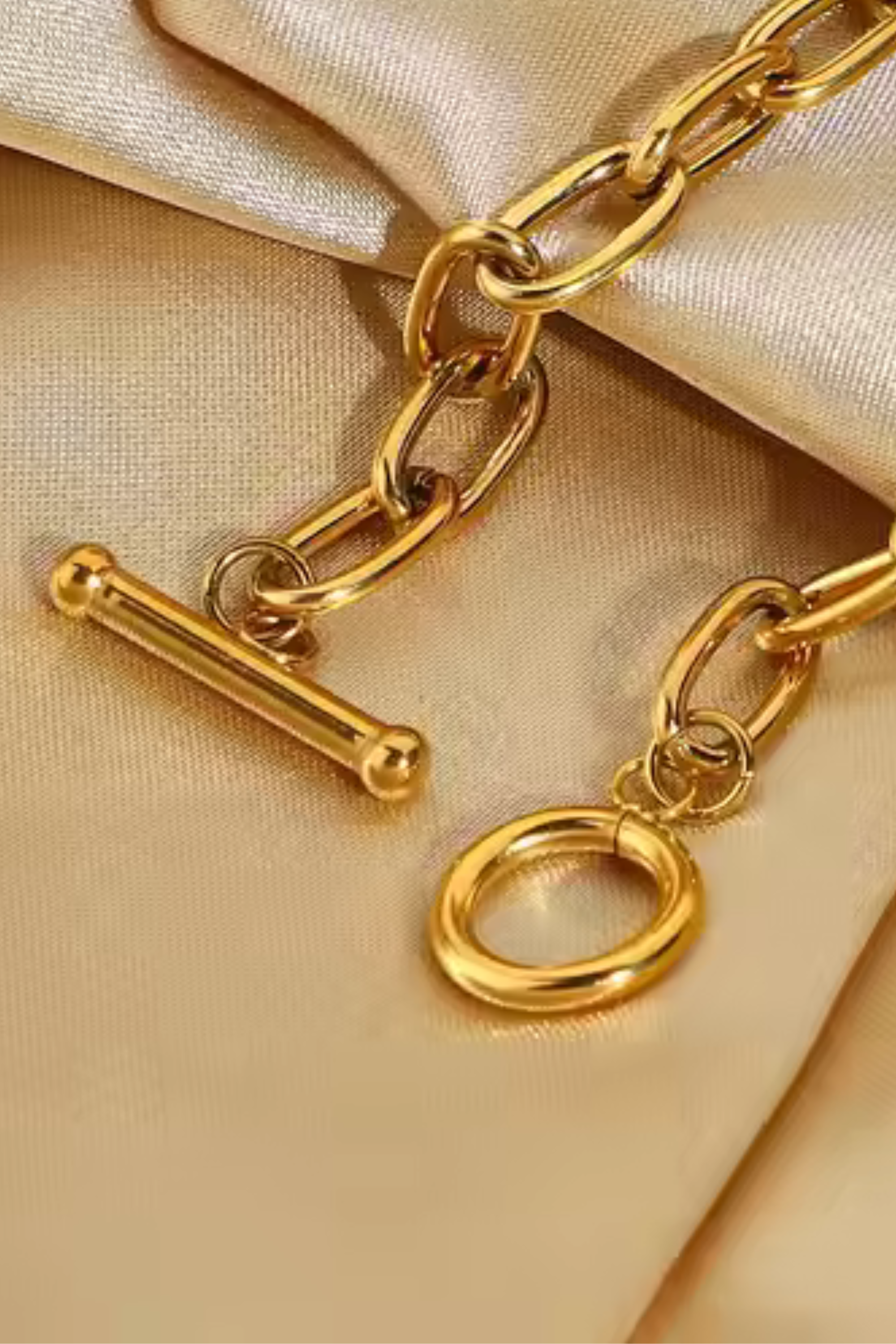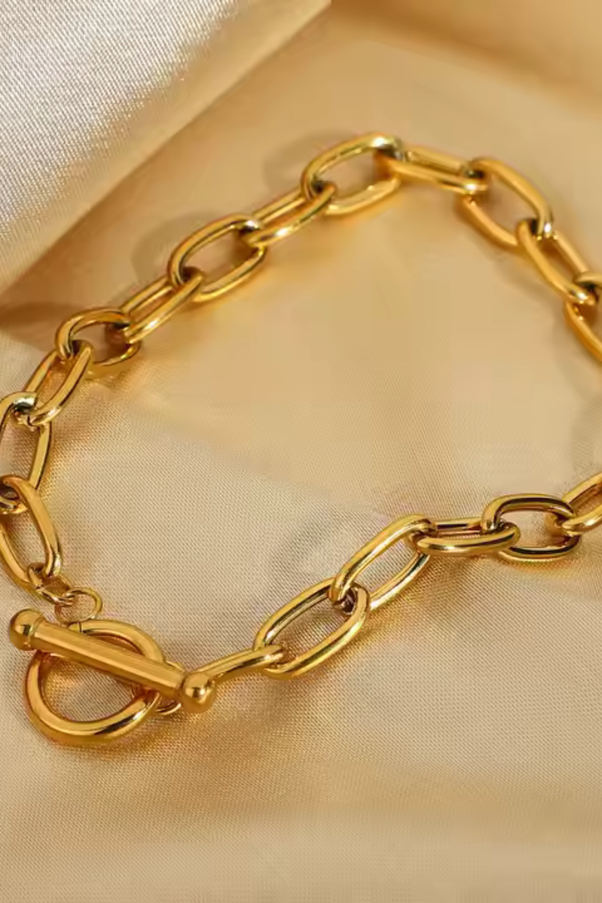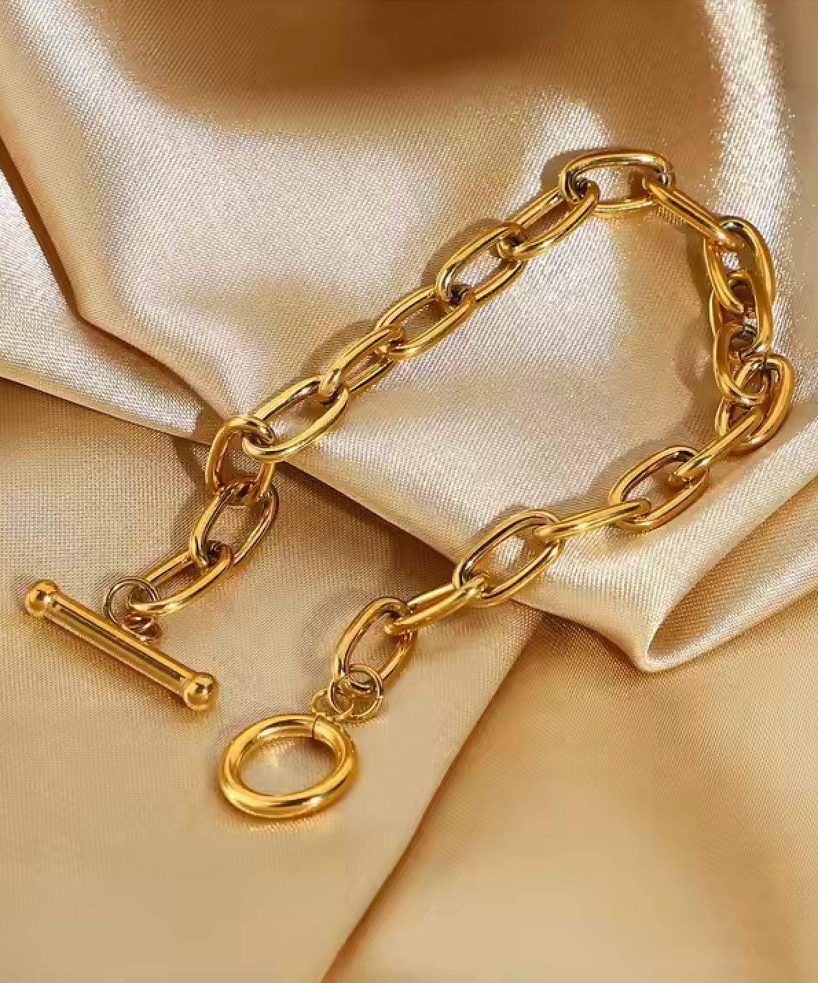 Elevate your everyday style with our Stainless Steel Toggle Link Bracelet. β¨ Featuring a sleek, modern design with bold interlocking links, this bracelet is finished with a classic OT clasp for a touch of effortless sophistication.